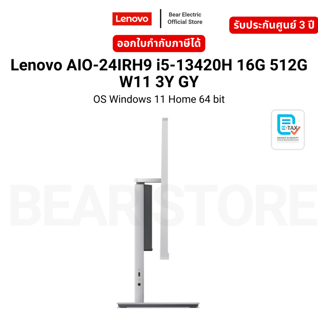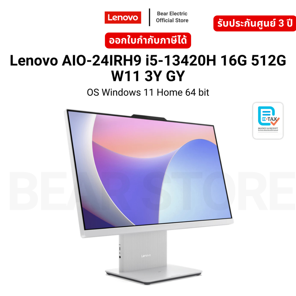 Lenovo AIO-24IRH9 i5-13420H 16G 512G W11 3Y GY OS Windows 11 Home 64 bit รับประกัน 3 ปี