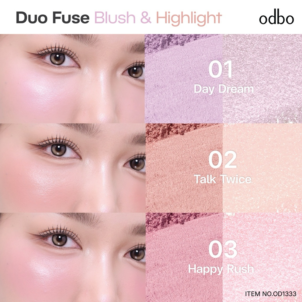 ส่งด่วน/ส่งทันที ODBO DUO FUSE BLUSH & HIGHLIGHT โอดี บีโอ ดูโอ้ ฟิวส์ บลัช แอนด์ ไฮไลท์ OD1333 ปริมาณ 3+3กรัม