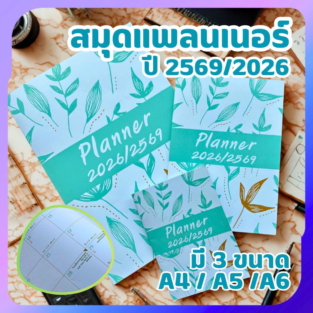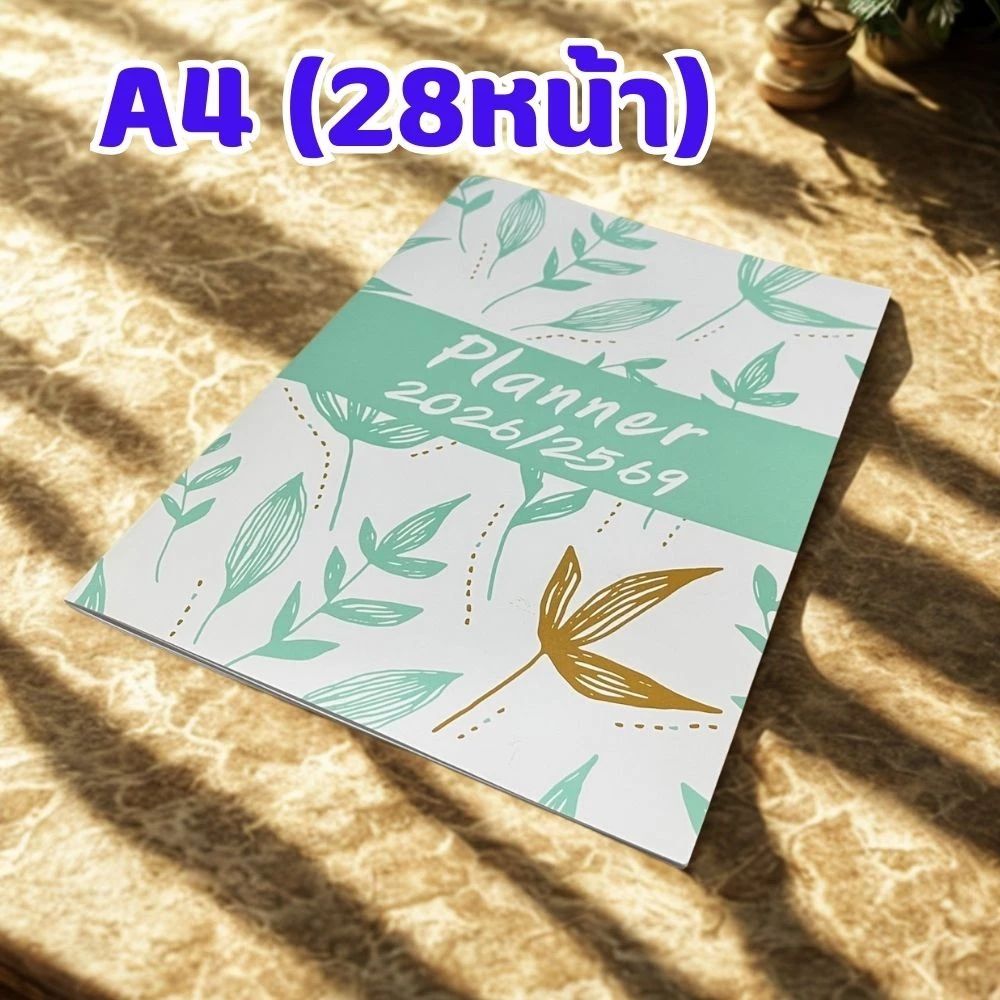 Planner 2569/2026 สมุดวางแผนชีวิต ลายใบไม้ มินิมอล ขนาด A4 จำนวน 28 หน้า