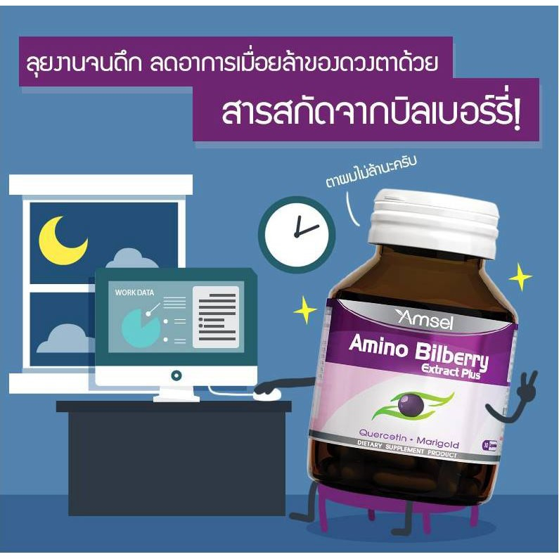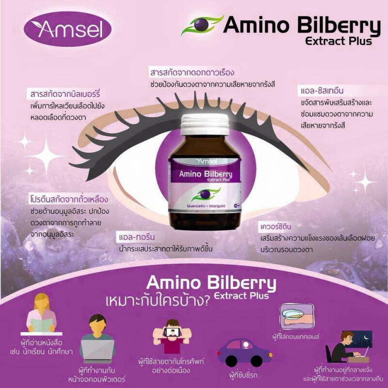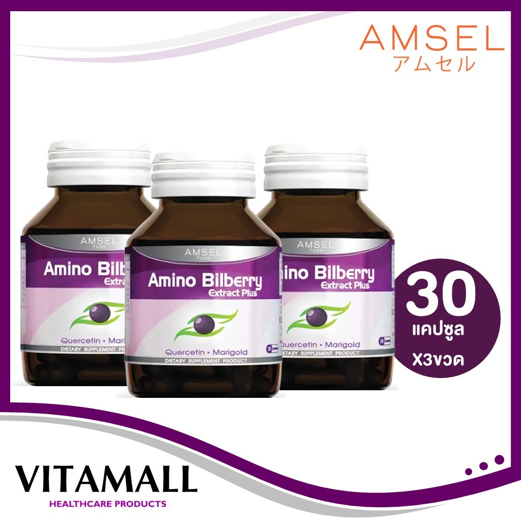 3 ขวด คุ้มกว่า Amsel Amino Bilberry อาหารเสริมบำรุงดวงตา 30 แคปซูล