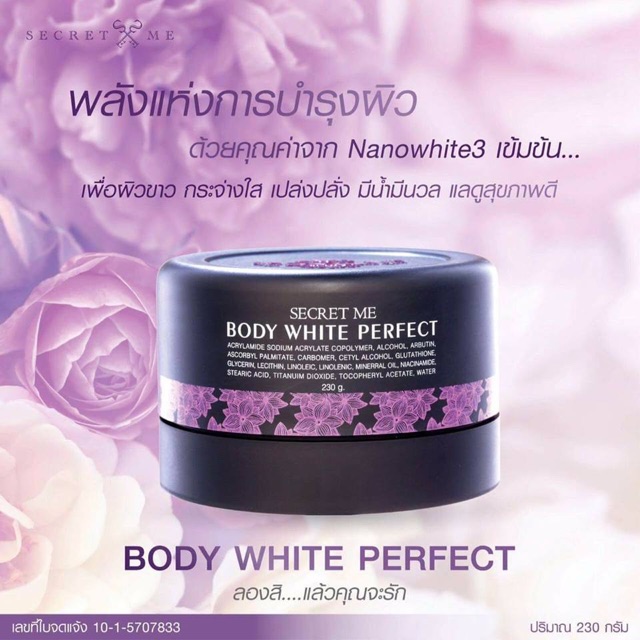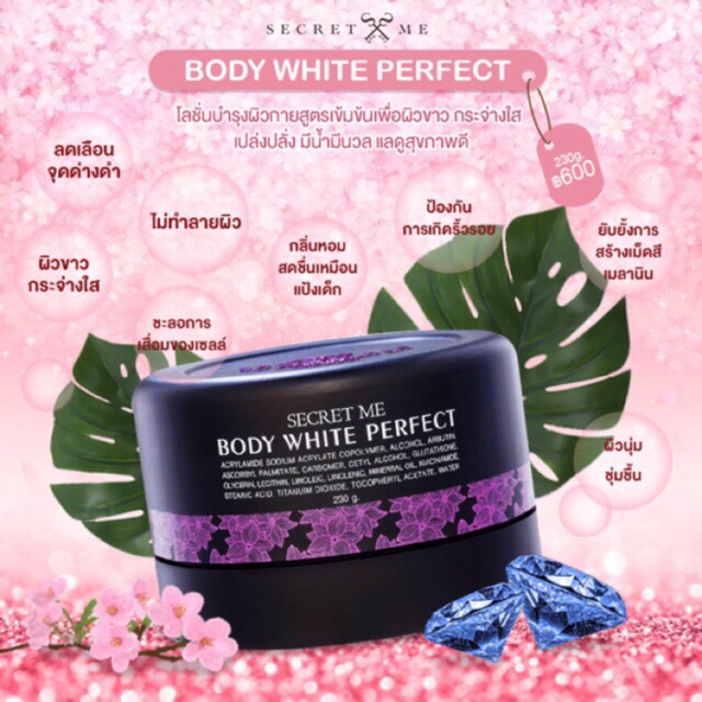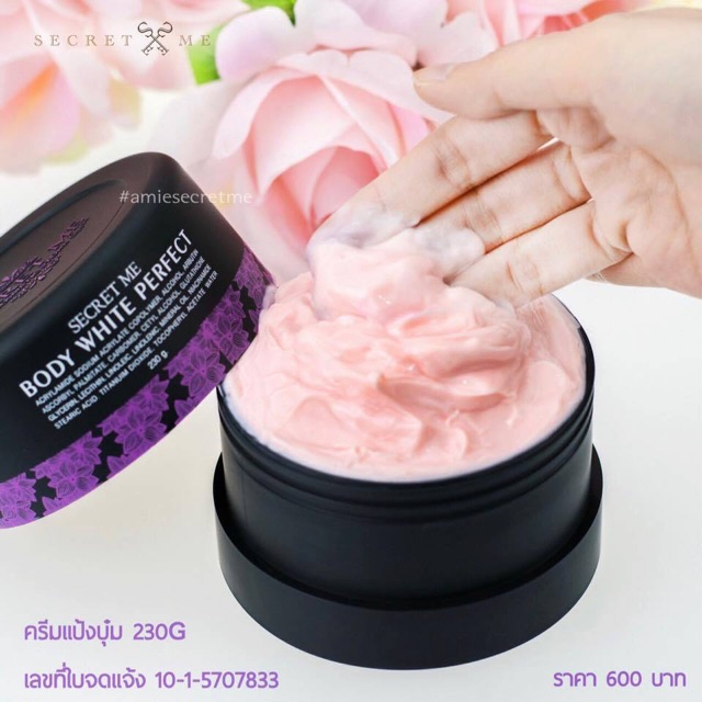 ครีมแป้งบุ๋ม (กรีดโค้ด) Secret me Body White Perfect ขนาด 230กรัม