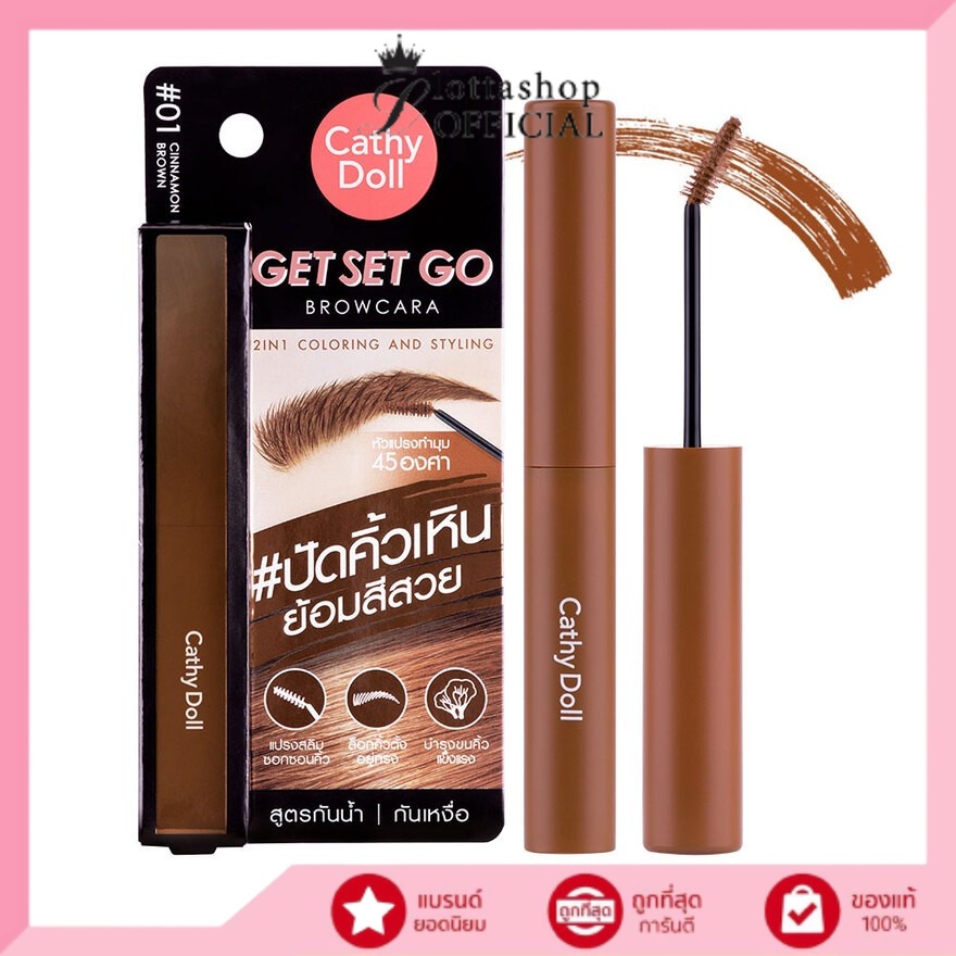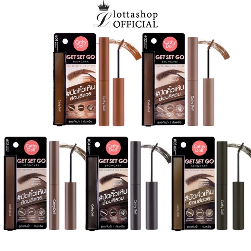 (1ชิ้น) Cathy Doll Get Set Go Browcara #ปัดคิ้วเหินย้อมสีสวย กันน้ำ กันเหงื่อ 3.2กรัม