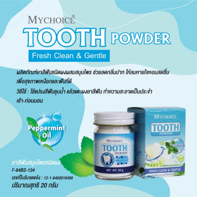 ผงขัดฟันมายช้อยส์ Tooth MYCHOICE สมุนไพรขัดฟัน ฟันขาว ลดกลิ่นปาก สูตรเร่งด่วน