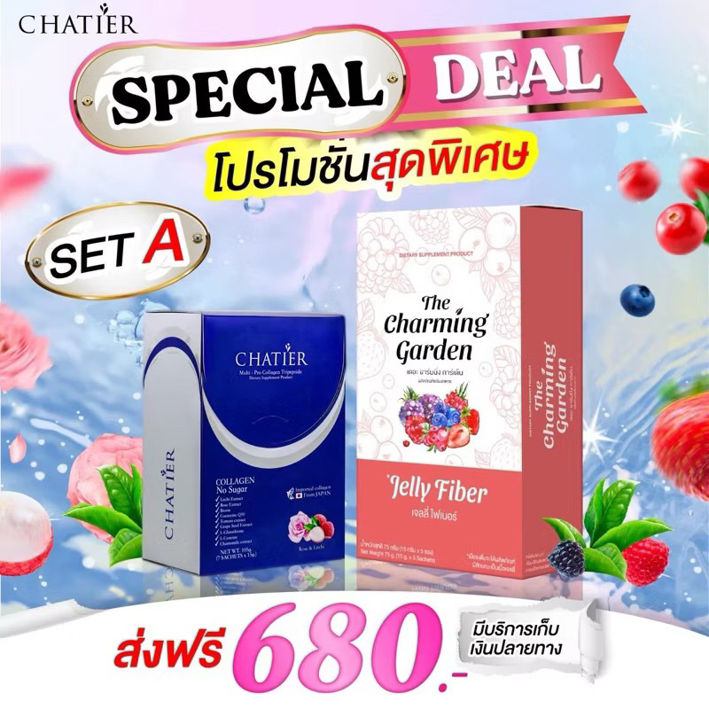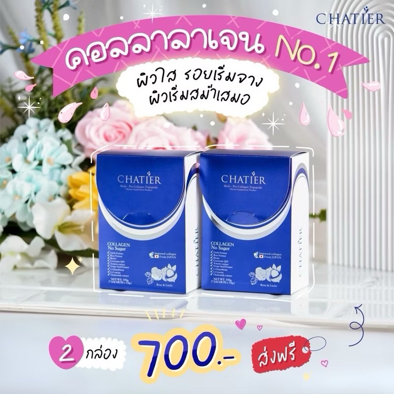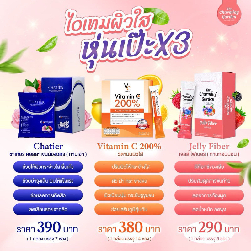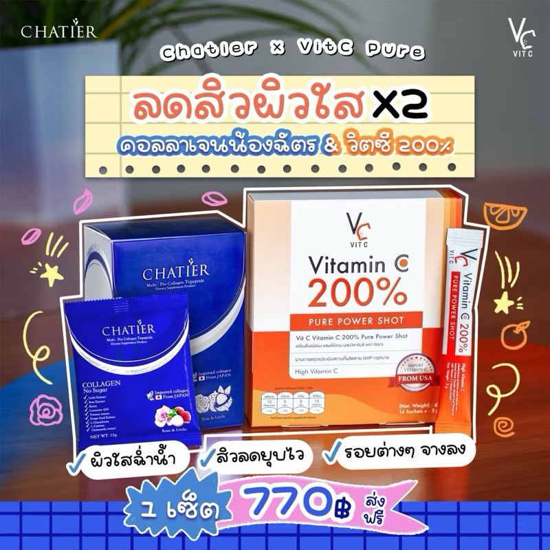 [พร้อมส่ง ของแท้ ส่งฟรี🍊]น้องฉัตรชาเทียร์ & วิตซี200% คอลลาเจนน้องฉัตร Chatier Premium Collagen & VC VitC Vitamin C 200%