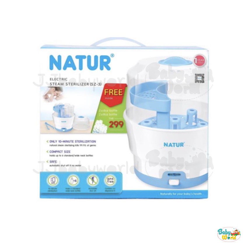 มือ 1 เครื่องนึ่งขวดนม Natur รุ่น SZ - 3 10 นาที ฟรี ขวดนม 4 ขวดในกล่อง หม้อนึ่ง รับประกัน 1 ปี