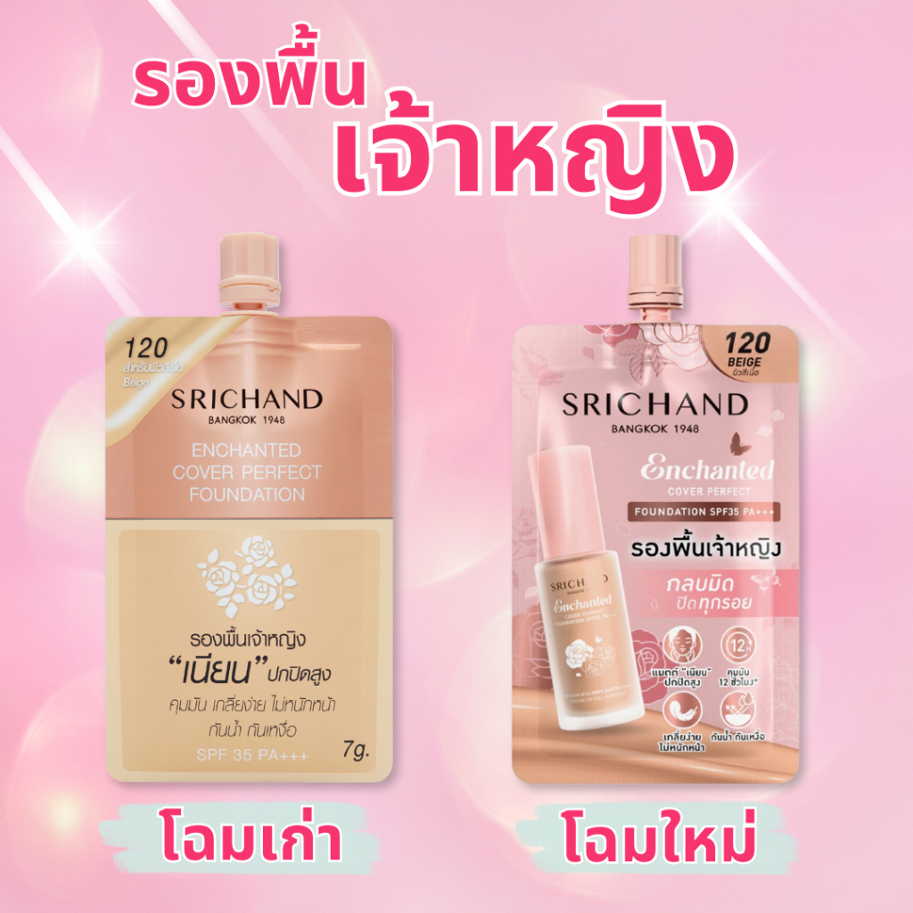 (1 ซอง) แพ็คเกจใหม่ SRICHAND ศรีจันทร์ รองพื้นเจ้าหญิง (ปริมาณ 7 กรัม)