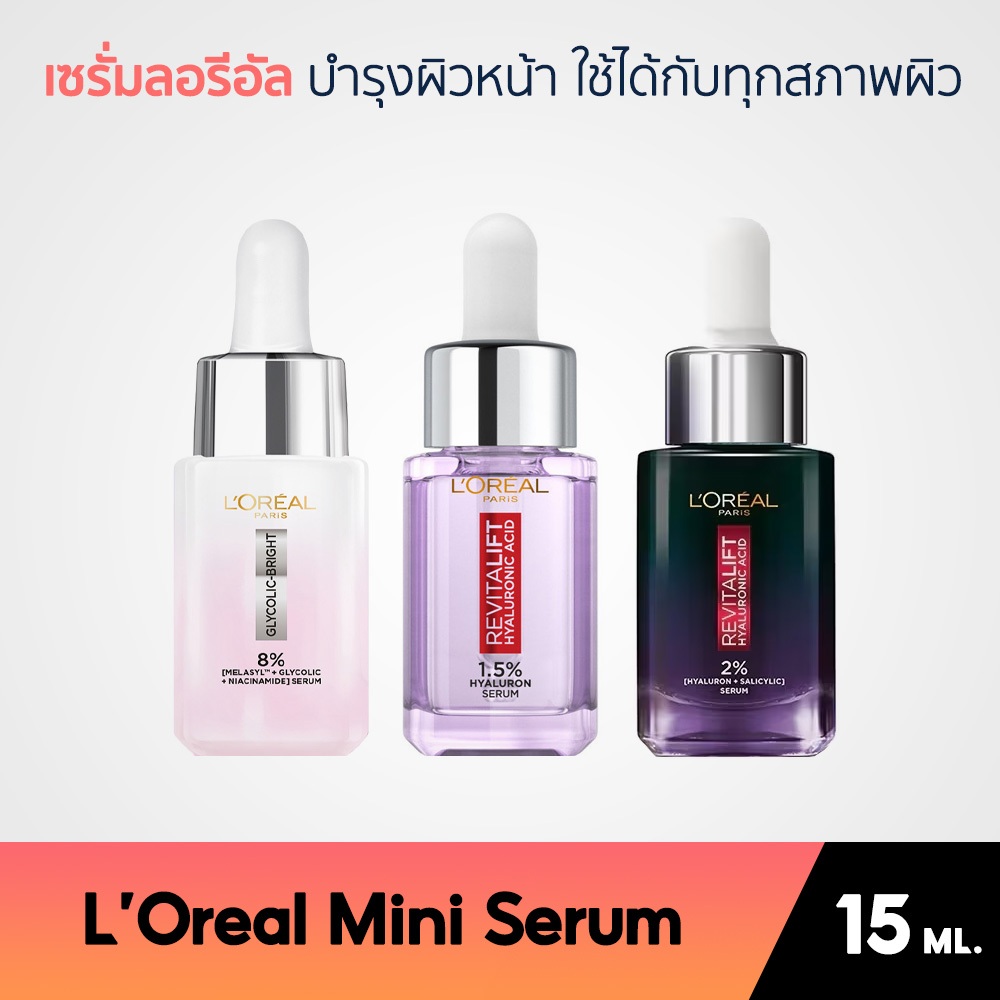 L'Oreal Mini Serum เซรั่มลอรีอัล บำรุงผิวหน้า ใช้ได้กับทุกสภาพผิว 15 ML.