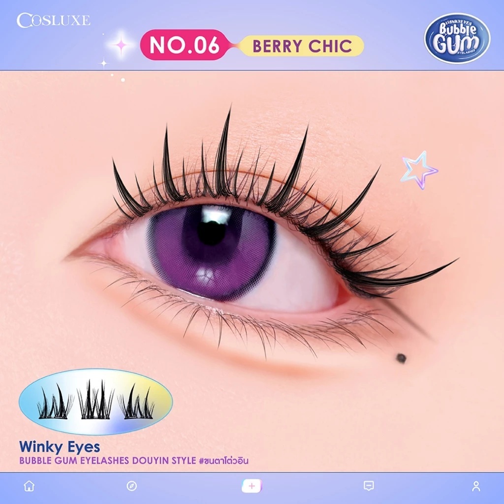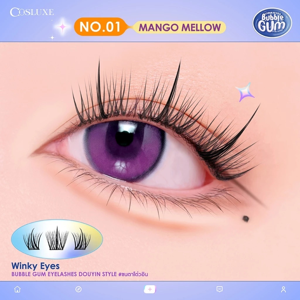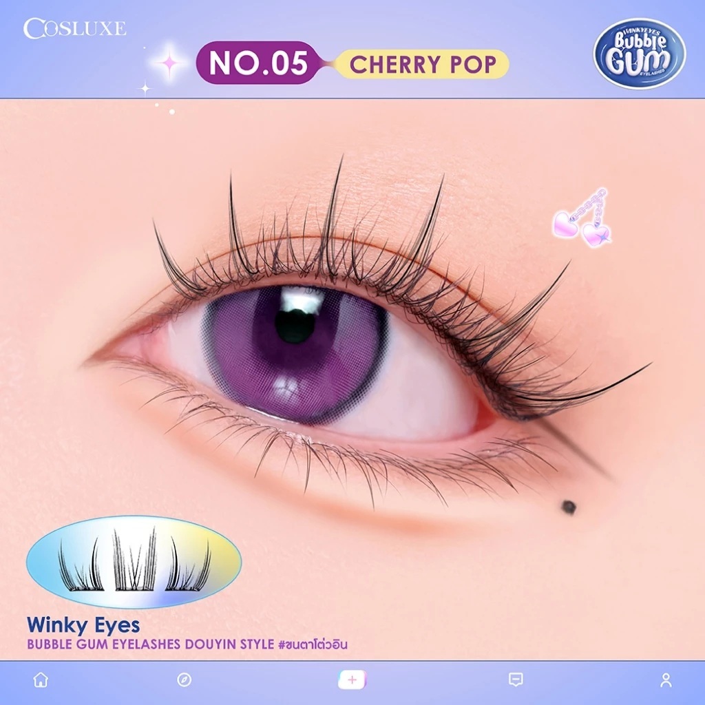ขนตาปลอมแบ่งช่อ มีกาวในตัว คอสลุคส์ Cosluxe Winky Eyes Bubble Gum Eyelashes-Douyin Style