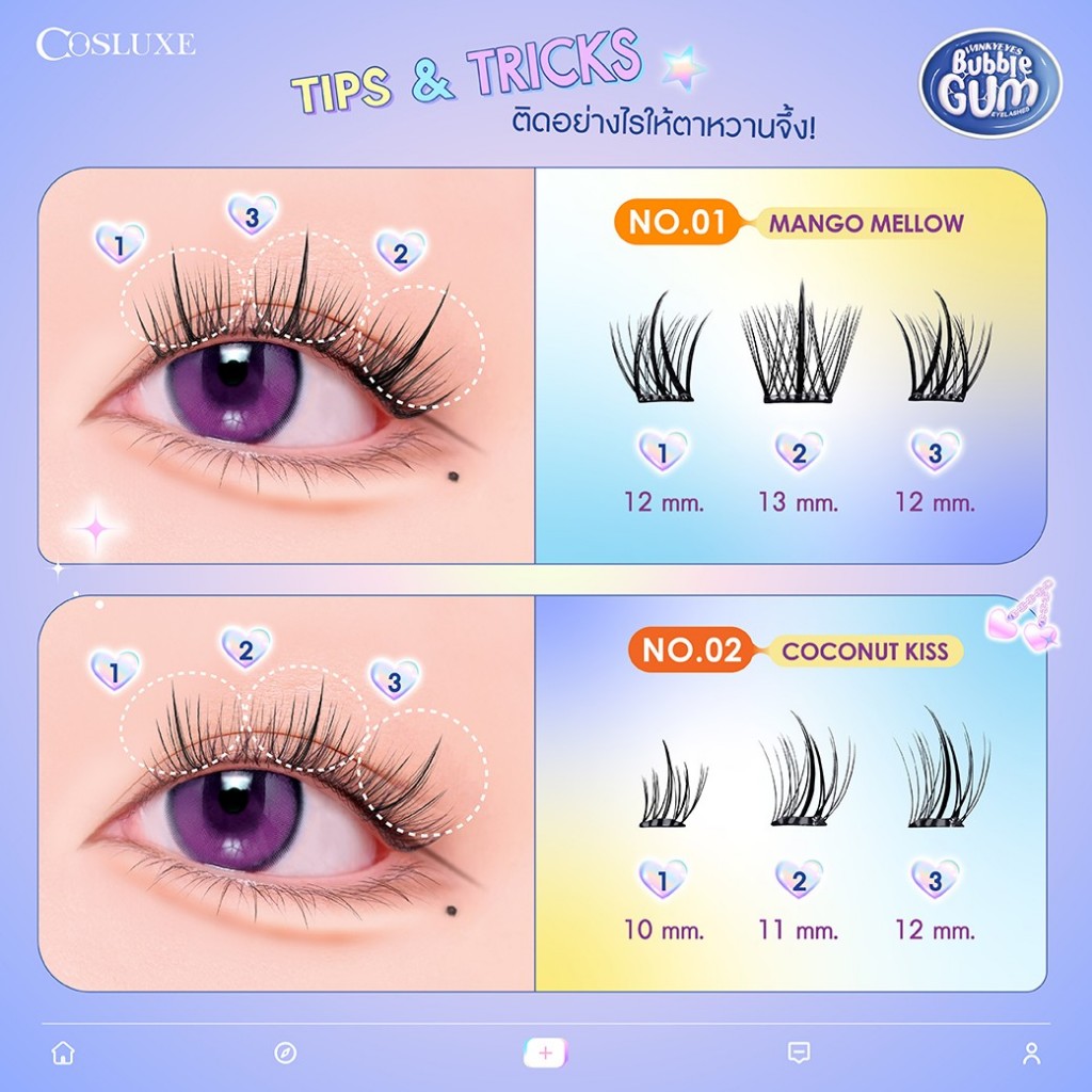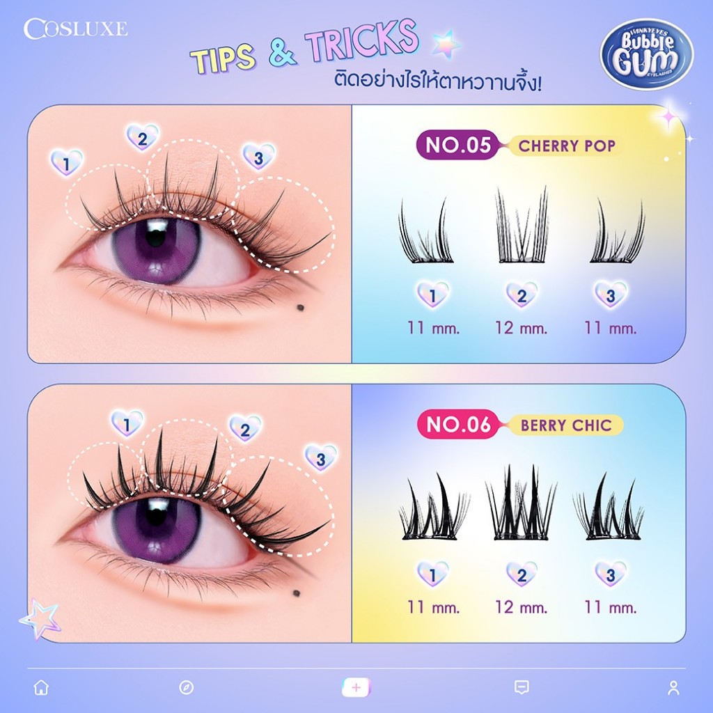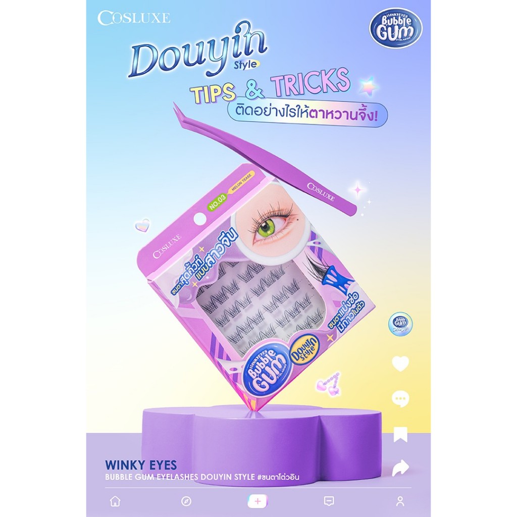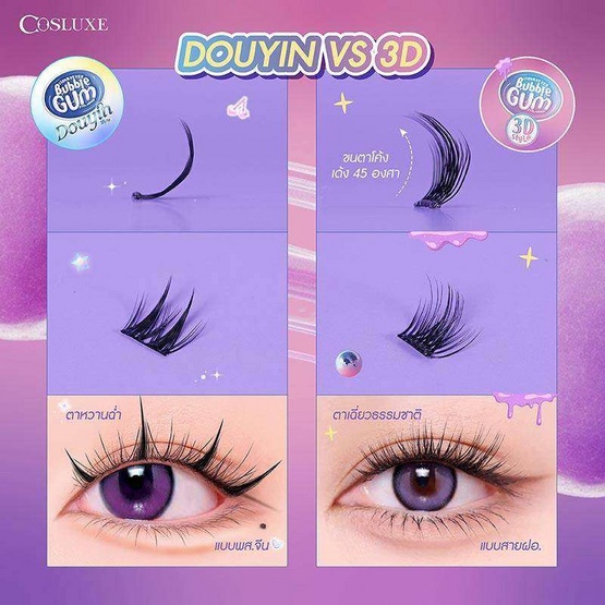 ขนตาปลอมแบ่งช่อ มีกาวในตัว คอสลุคส์ Cosluxe Winky Eyes Bubble Gum Eyelashes-Douyin Style