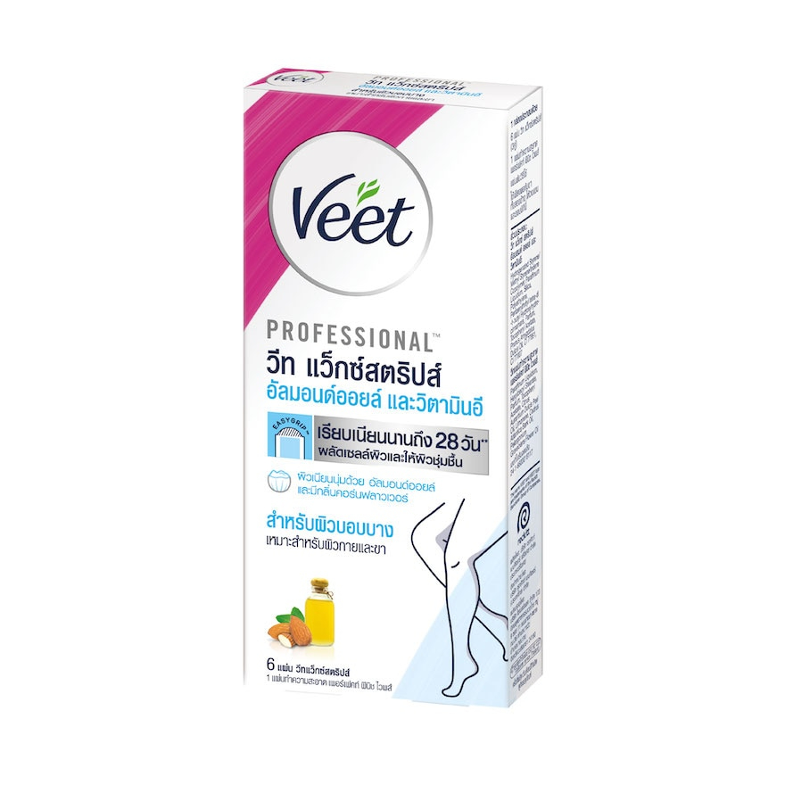 Veet Wax Stripes Almond Oil & Vitamin E 6s - วีท แว็กซ์สตริปส์ อัลมอนด์ ออยล์และวิตามินอี