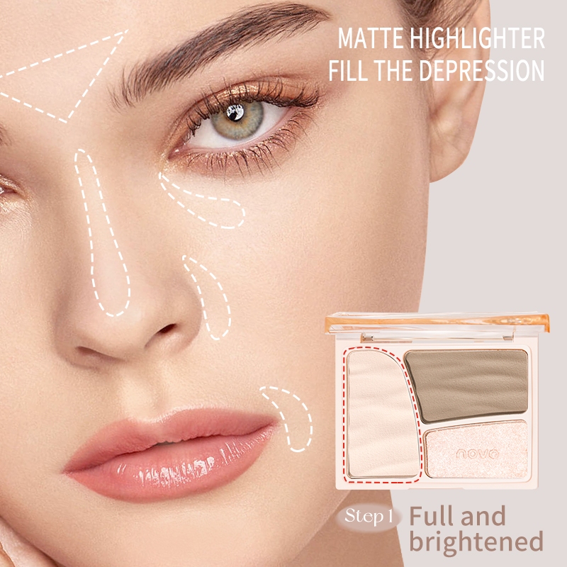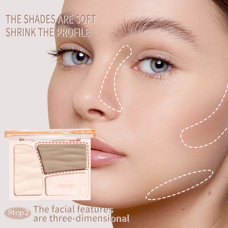 9079 (ใหม่/แท้) NOVO คอนทัวร์เฉดดิ้งและไฮไลท์ บรอนเซอร์ 3 ช่อง เนื้อชิมเมอร์ เนื้อแมท 11g