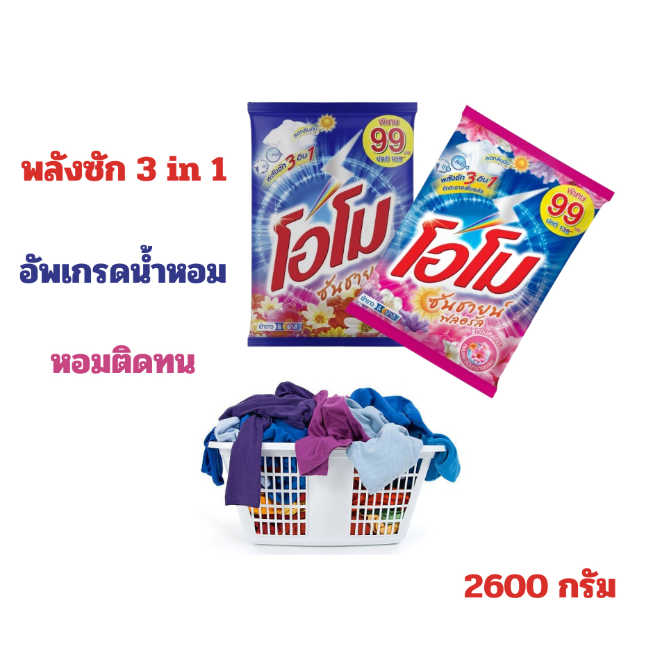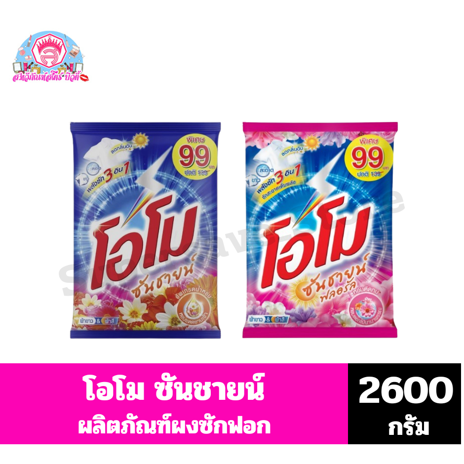 โอโม ซันชายน์ ผงซักฟอก สูตรมาตรฐาน ขนาด 2600 กรัม.