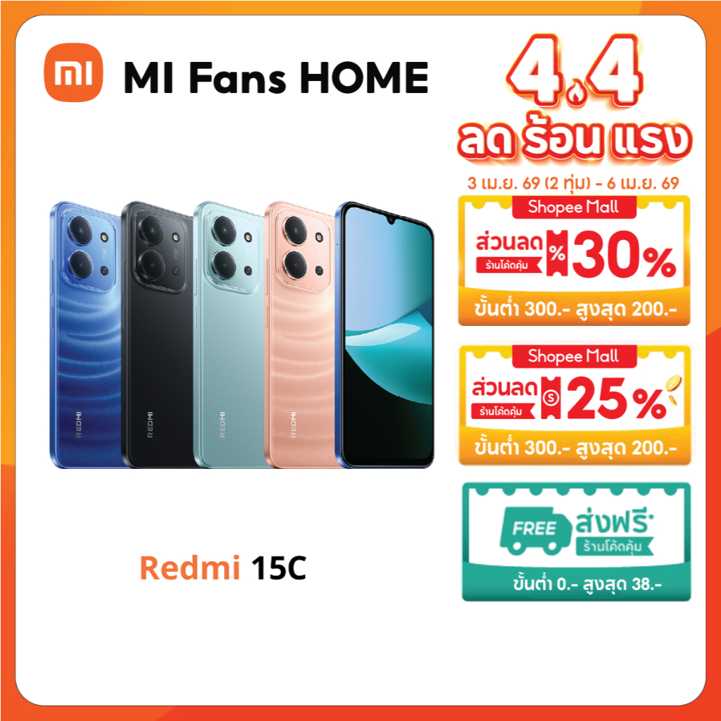 (NEW) XIAOMI Redmi 15C/14C 4G (6+128GB/8+256GB) กล้องคู่ AI คมชัด 50MP แบตเตอรี่ 6000mAh หน้าจอใหญ่ 6.9 นิ้ว ชาร์จเร็ว
