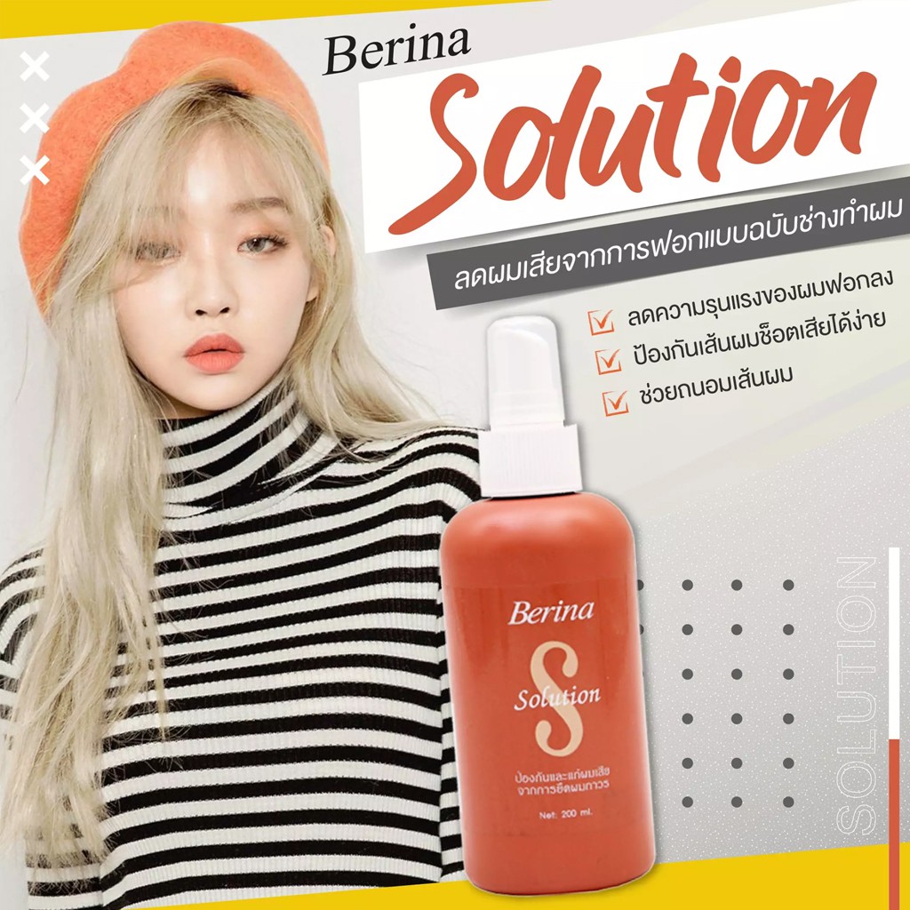 เบอริน่า โซลูชั่น บำรุงและป้องกันผมเสียจากการยืดผม Berina Solution 200ml.
