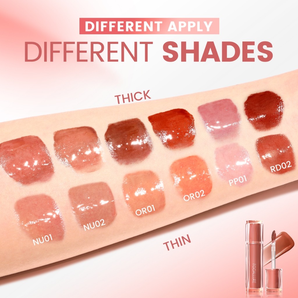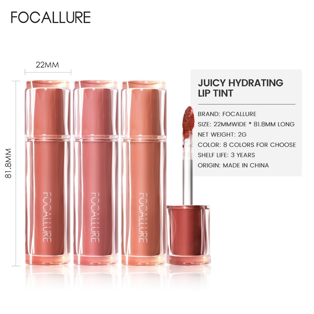 [ลดราคาล้างสต๊อก] Focallure Pro Stain Mirror Syrup Tint Dewy Lip Tint Gloss High Pigment Color Lock No Transfer Non-Stick Cup Moisture Light Clear โปร่งใส