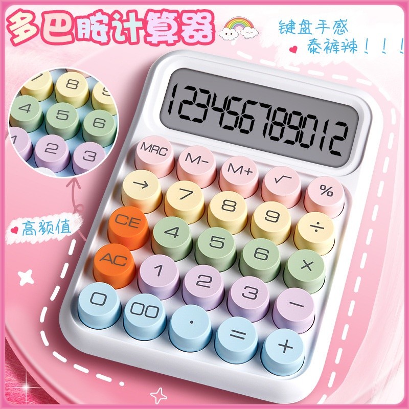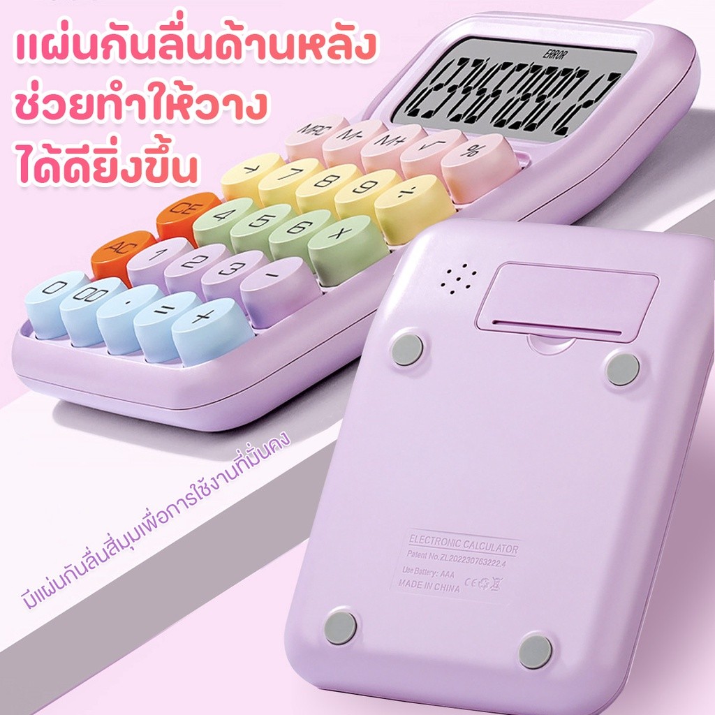 เครื่องคิดเลข 12 หลัก หน้าจอขนาดใหญ่ ลายจุด สไตล์เกาหลี สําห รับโรงเรียน และสํานักงาน ปุ่มใหญ่ ใช้งานง่าย น่ารักมากๆ