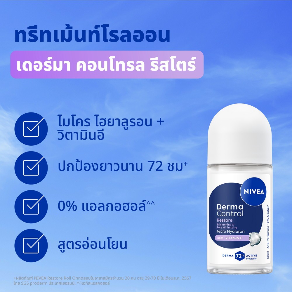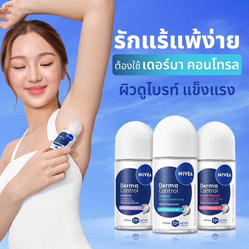 นีเวีย เดอร์มา คอนโทรล รีสโตร์ โรลออน 50 มล. NIVEA ครีมรักแร้ โรลออนผู้หญิง deodorant