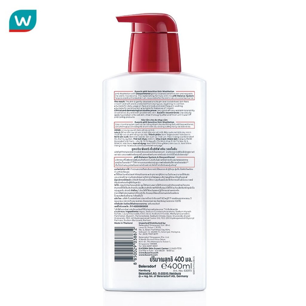 Eucerin ยูเซอริน พีเอช5 เซ็นซิทีฟ สกิน วอชโลชั่น 400 มล. ผลิตภัณฑ์ทำความสะอาดผิวกาย