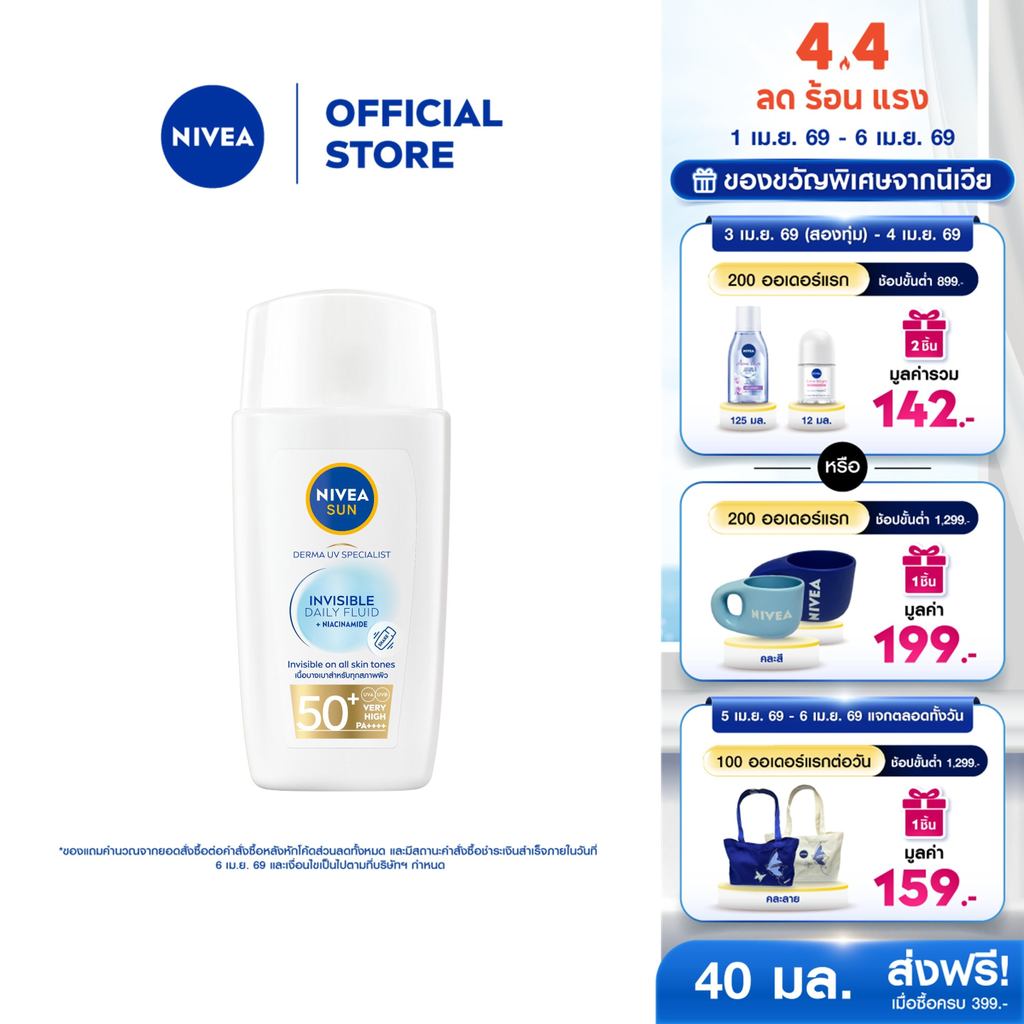 นีเวีย ซัน เดอร์มา อินวิซิเบิ้ล เดลี่ ฟลูอิด เอสพีเอฟ50+ 40มล. NIVEA กันแดดหน้า กันแดดผิวหน้า ครีมกันแดด