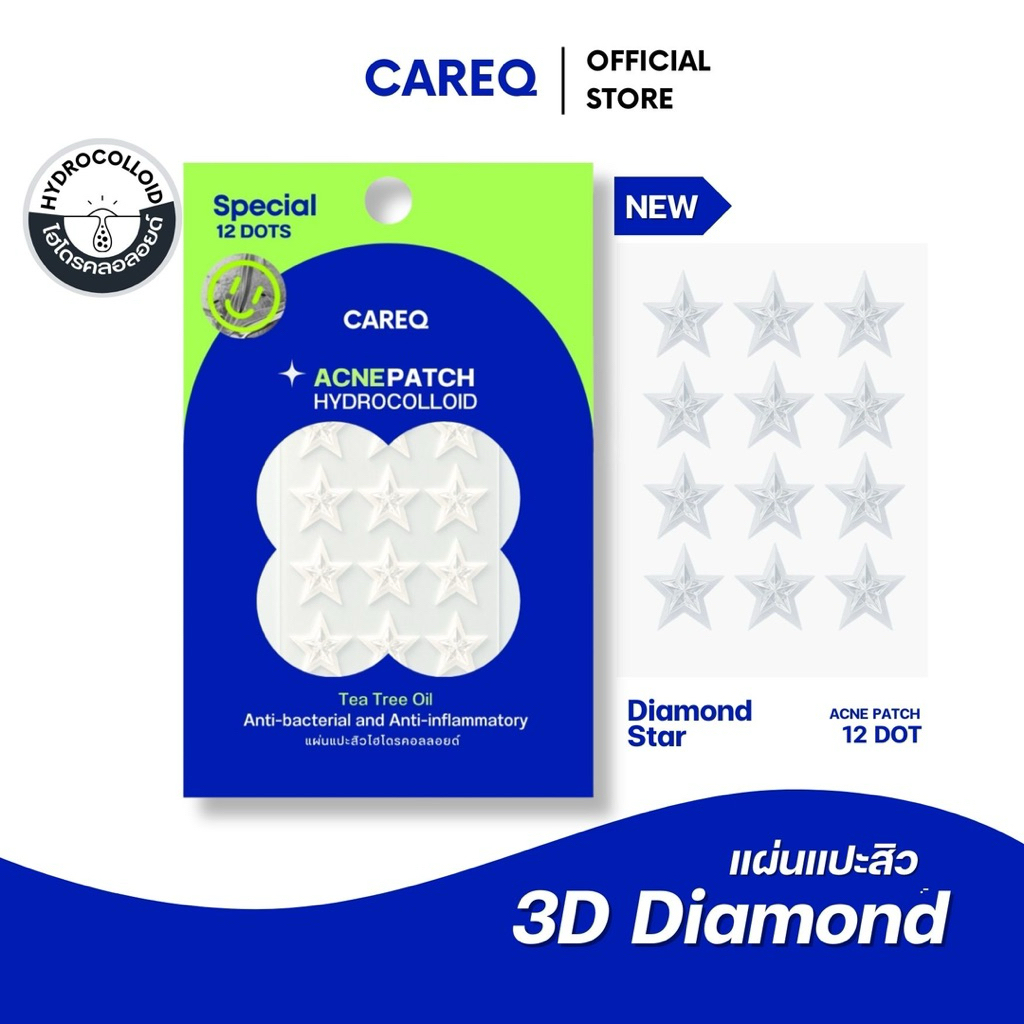 ใหม่ล่าสุด! แผ่นแปะสิว CAREQ Diamond แบบเพชร ดูดสิว สิวยุบ พร้อมส่งในไทย