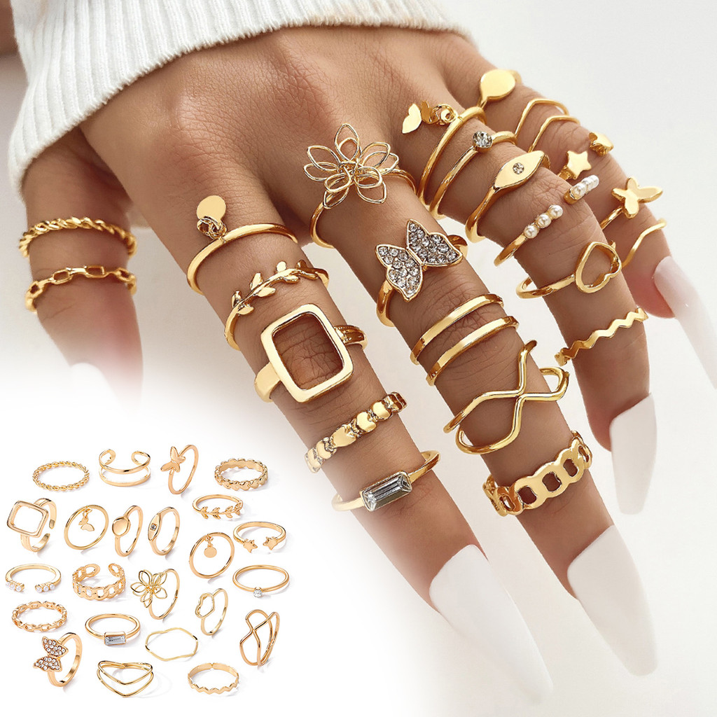 Retro Geometric Spiral Cross Love Butterfly Multi-Element Ring