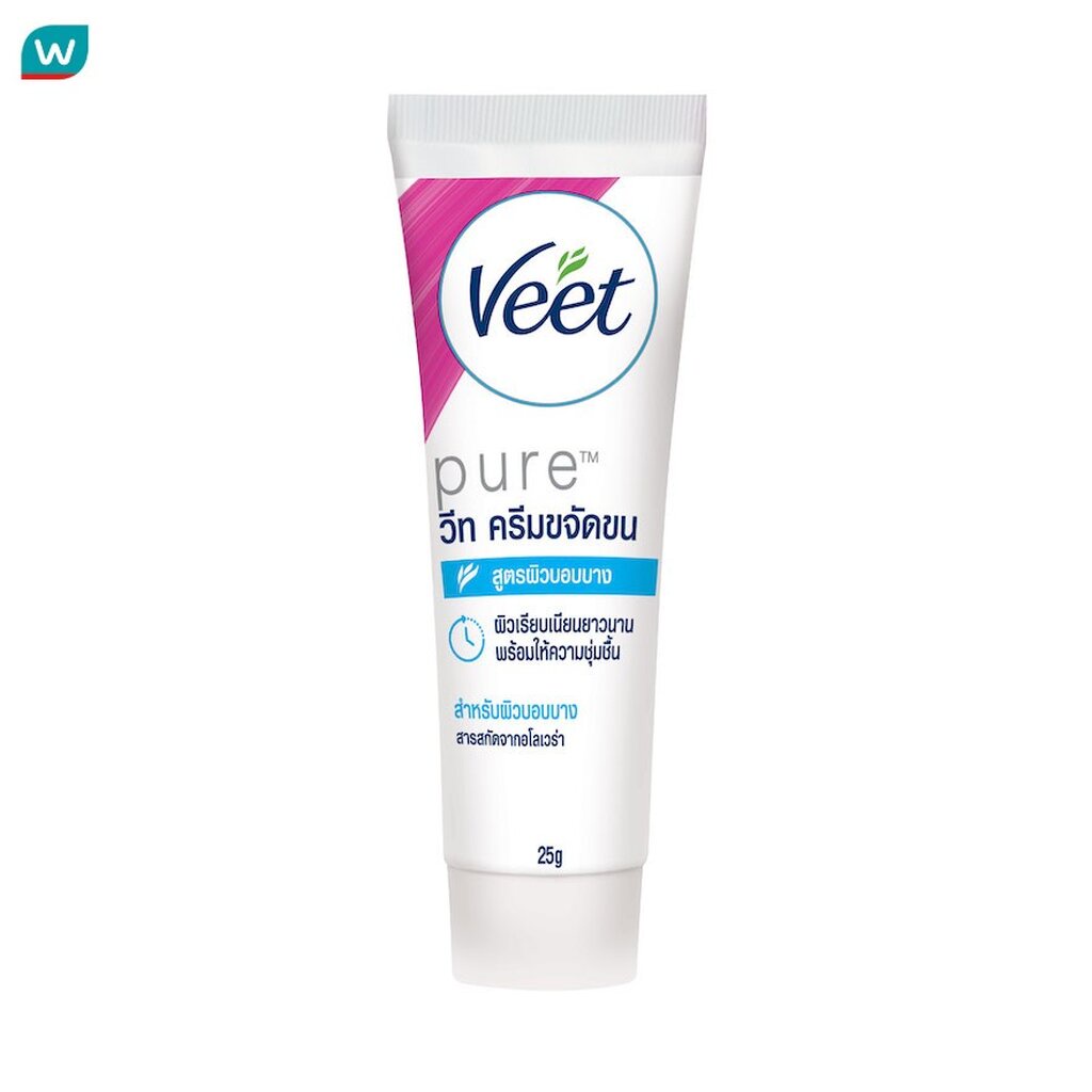 Veet วีท ครีมขจัดขน เพียว อโลเวร่า ผิวบอบบาง 25 กรัม ครีมกำจัดขน แว๊กซ์ขน