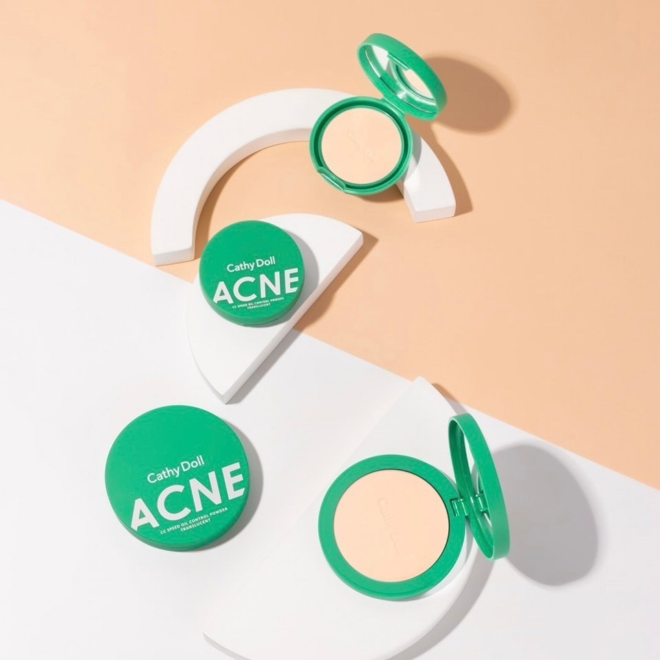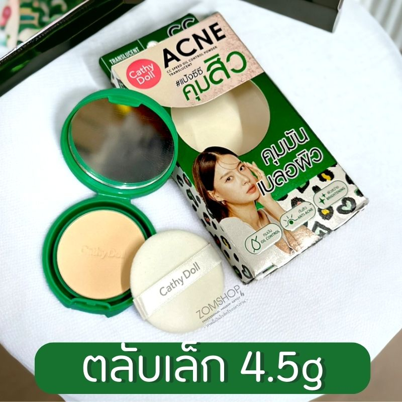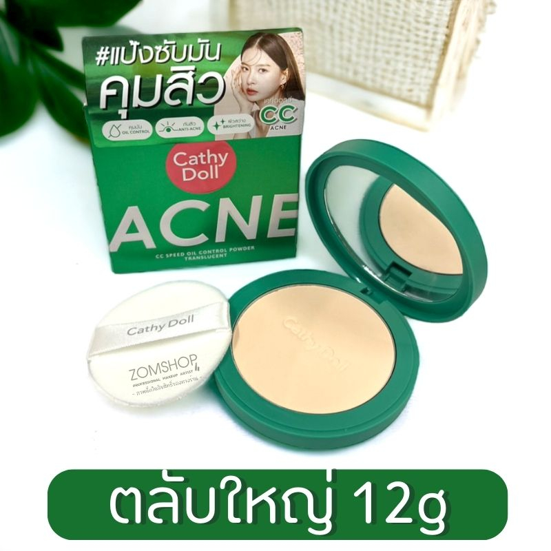 Cathy Doll【สีเขียว】แป้งซับหน้ามัน คุมมัน【ไม่เปลี่ยนสี】ACNE CC SPEED OIL CONTROL POWDER TRANSLUCENT