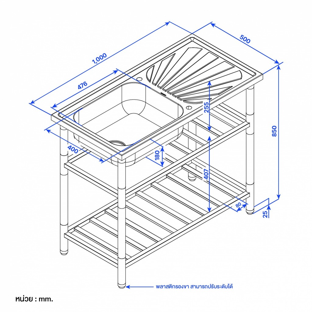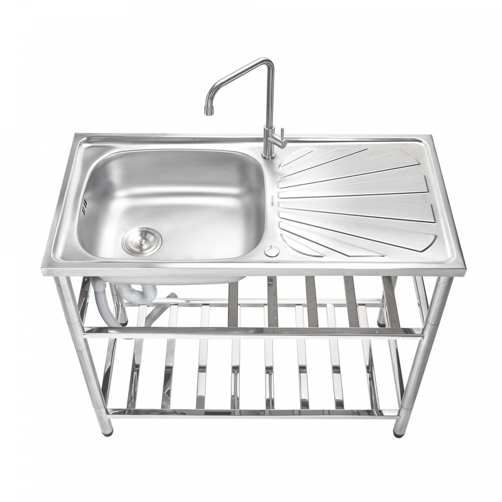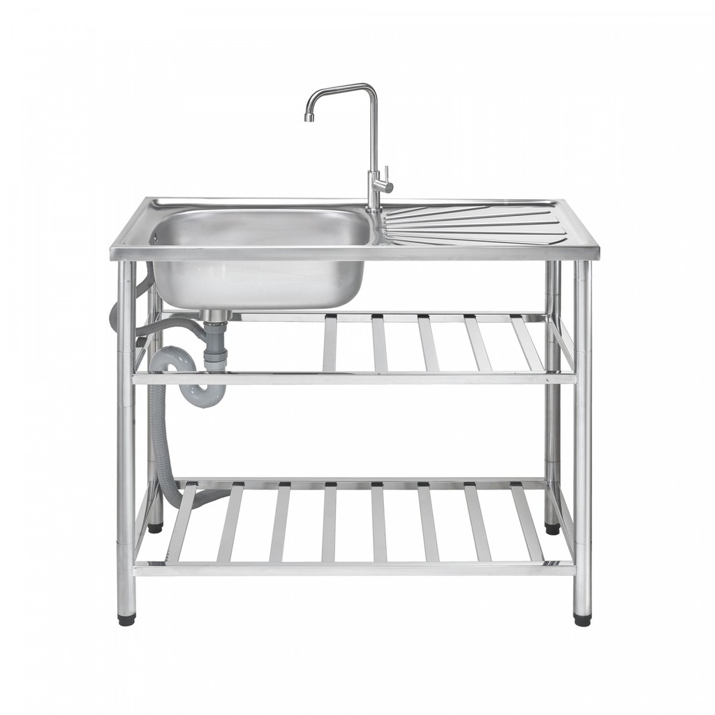 GlobalHouse MEX อ่างล้างจานพร้อมขาตั้ง 1 หลุม มีที่พัก ขนาด50x100x85ซม. PSR100 สีโครเมี่ยม สินค้าของแท้คุณภาพดี