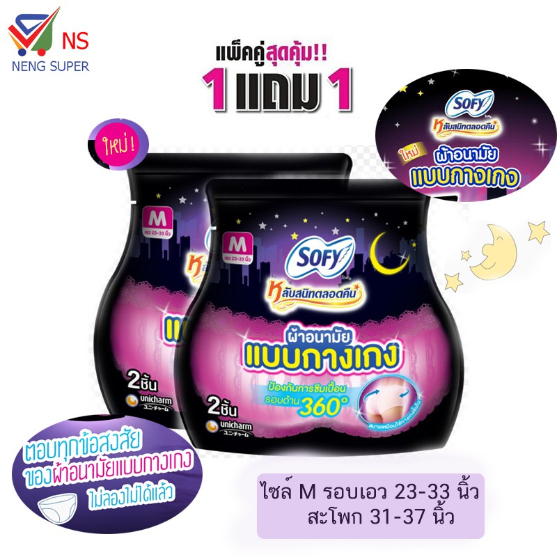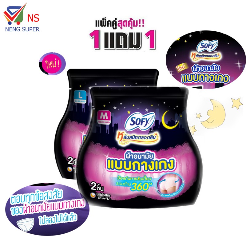 NS(ชื้อ1แถม1) Sofy โซฟี ผ้าอนามัย แบบกางเกง มิติใหม่แห่งการสวมใส่ เลือกไซล์ ได้ 1 ห่อ บรรจุ 2 ชิ้น