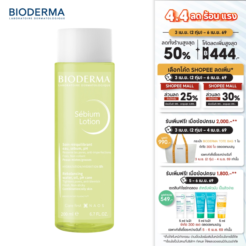 Bioderma Sebium Lotion 200 ml โทนเนอร์น้ำตบสำหรับผิวมัน ผิวผสม เป็นสิวง่าย