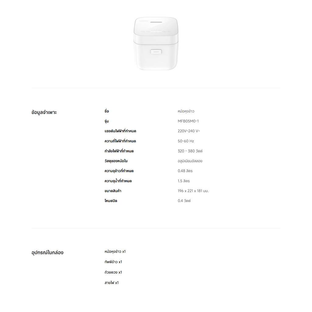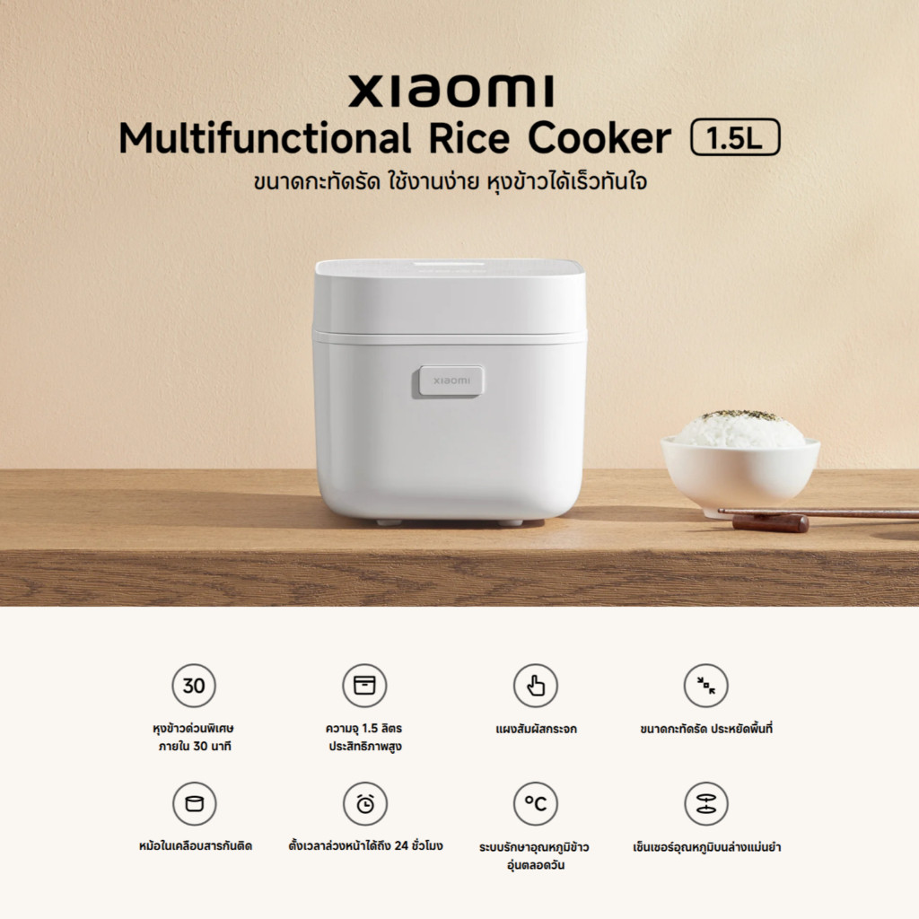 Xiaomi Multifunctional Rice Cooker 1.5L หม้อหุงข้าว ความจุ 1.5 ลิตร หุงด่วน 30 นาที ประสิทธิภาพสูง