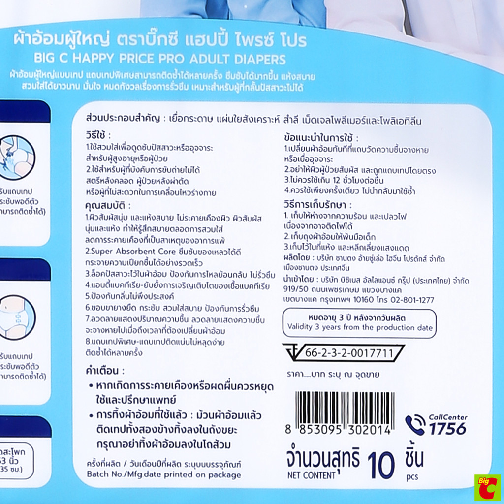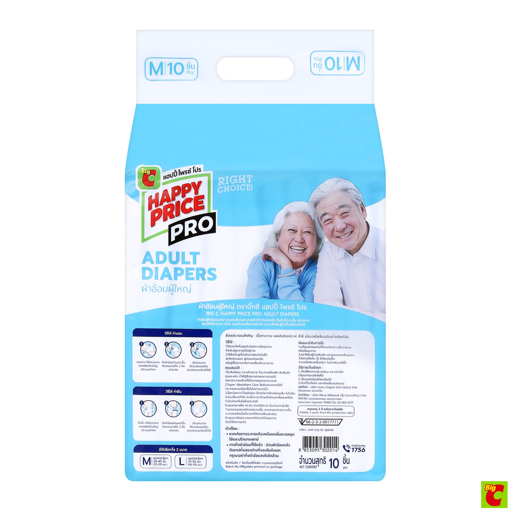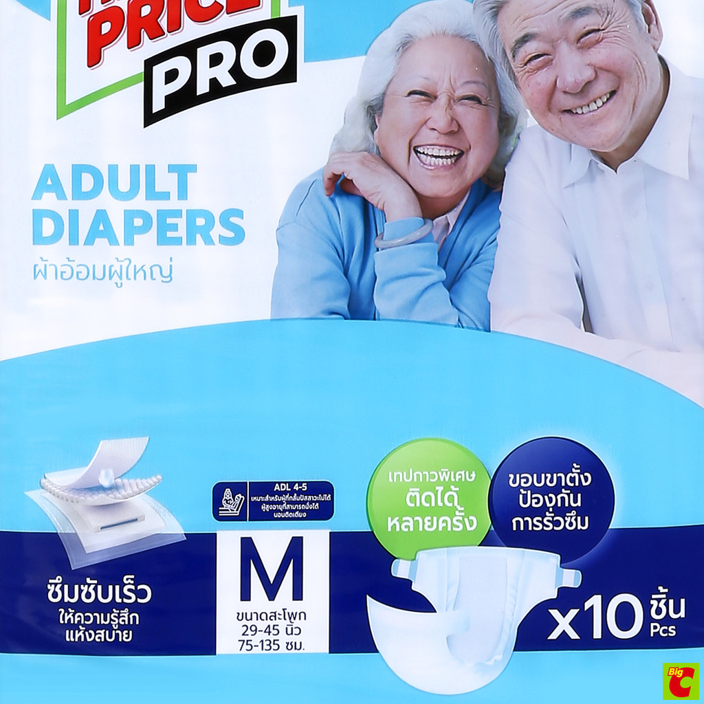 บิ๊กซี แฮปปี้ ไพรซ์ โปร ผ้าอ้อมผู้ใหญ่ ไซส์ M แพ็ค 10 ชิ้น