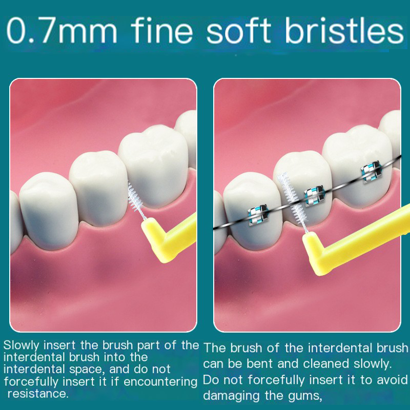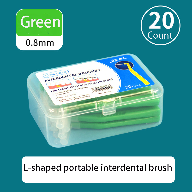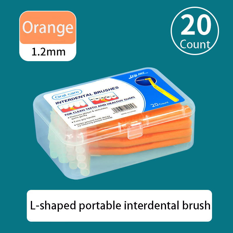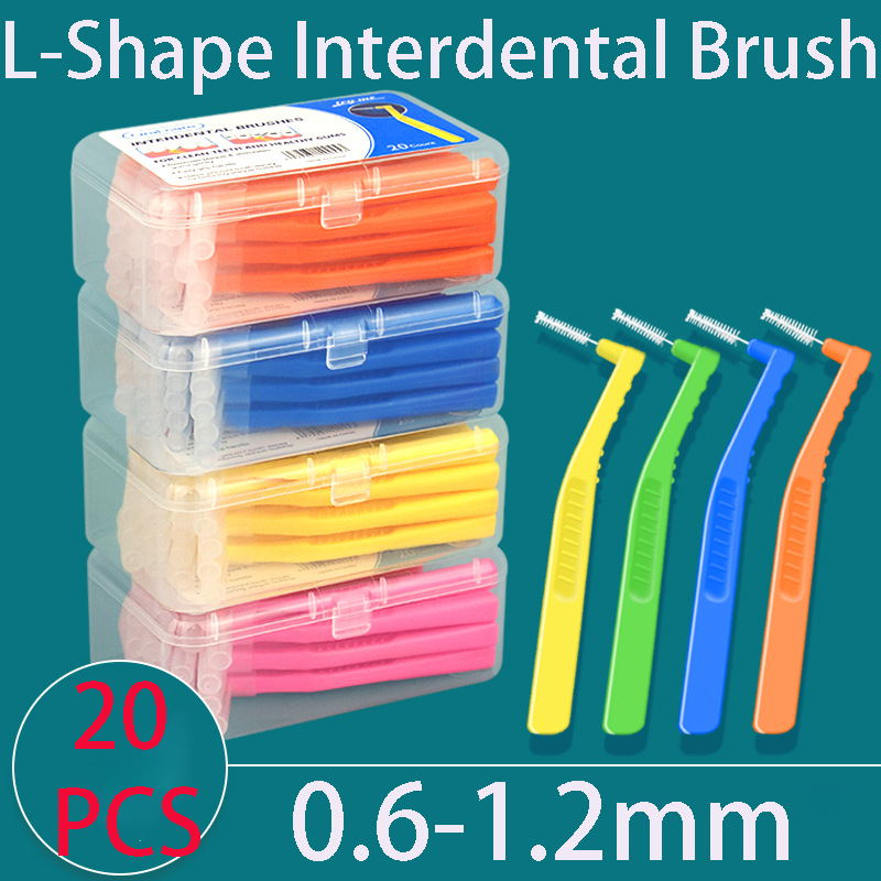 20 ชิ้น/กล่อง L-Shape Interdental แปรงขนนุ่มแปรงสีฟันจัดฟัน 0.6-1.2 มม.แบบพกพานํากลับมาใช้ใหม่สําหรับเด็กผู้ใหญ่ฟัน Braces Oral Care