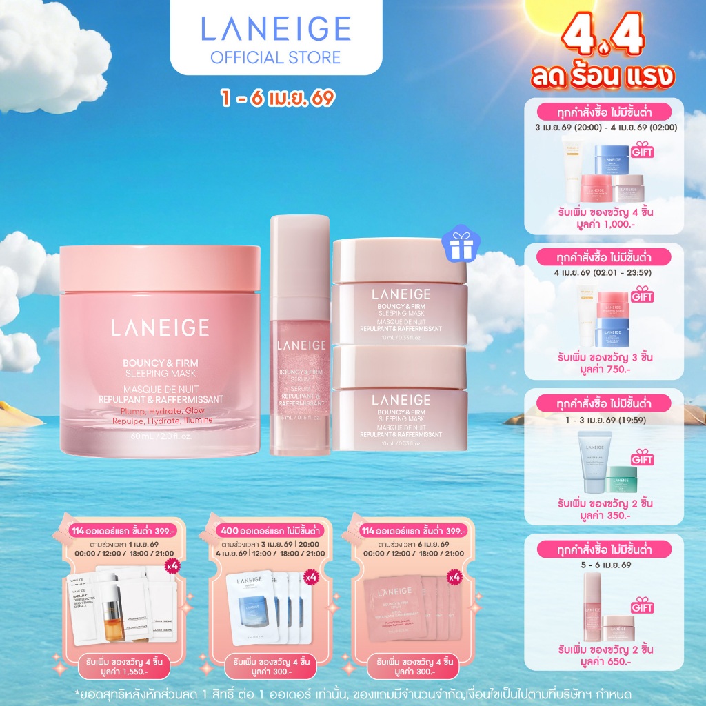 LANEIGE Bouncy & Firm Sleeping Mask 60ml มาส์กหน้าข้ามคืน ให้ผิวนุ่มเด้ง กระชับ อิ่มน้ำ โกลว์ใส