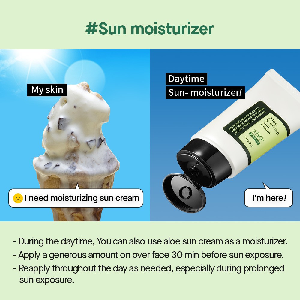 Cosrx Aloe Soothing Sun Cream ครีมกันแดด SPF 50 PA+++ 50 มล. สารสกัดจากว่านหางจระเข้ 5.5% ให้ความชุ่มชื้นอย่างอ่อนโยน