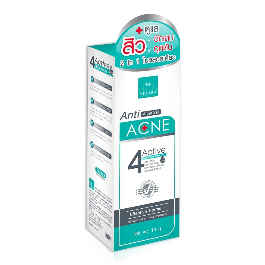 Vitara Anti Acne gel 10g 2in1 Burnova เจลบำรุงผิวที่เป็นสิวสูตรใหม่ ไม่มีส่วนผสมของแอลกอฮอล์ #133