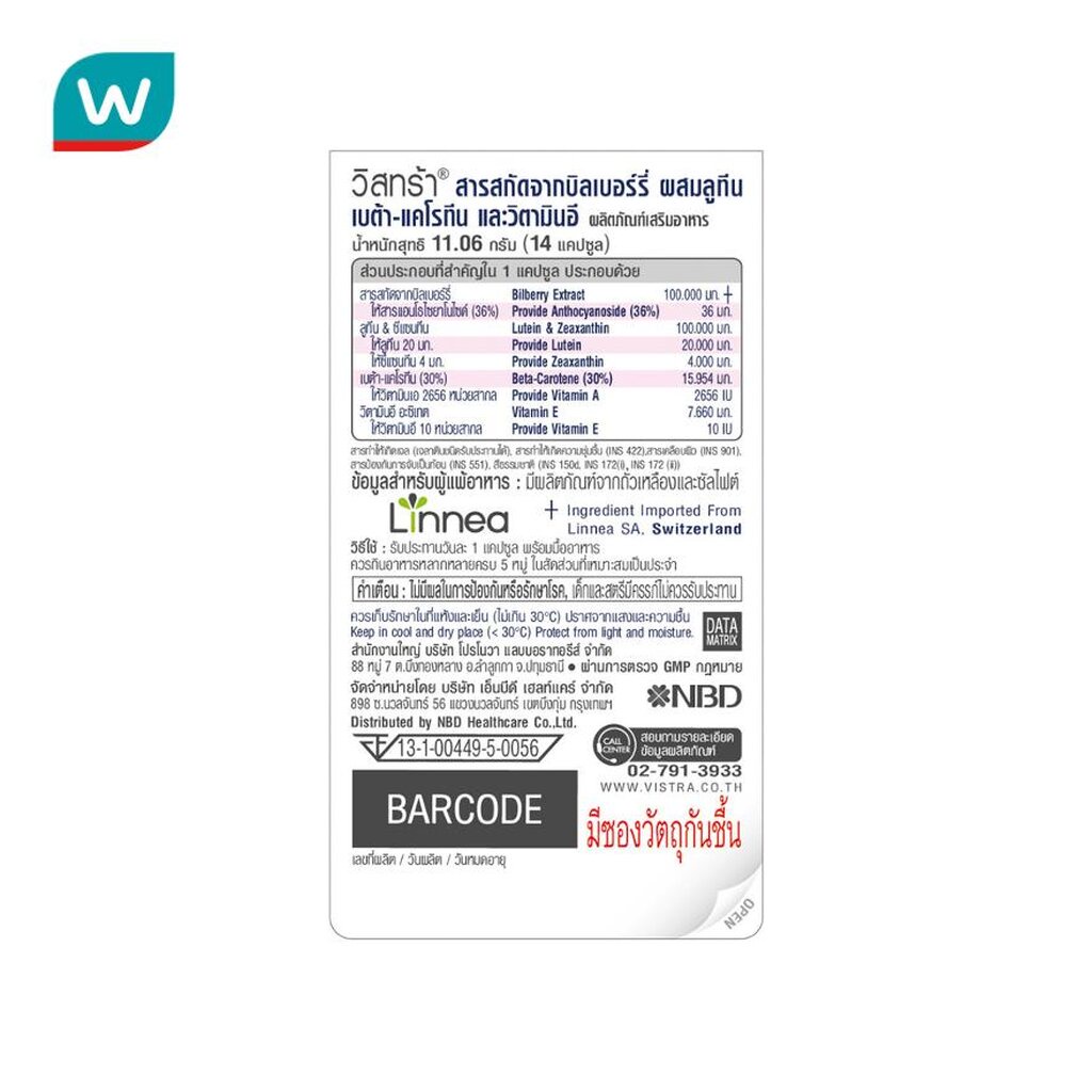 Vistra วิสทร้า สารสกัดจากบิลเบอร์รี่ พลัส 14แคปซูล