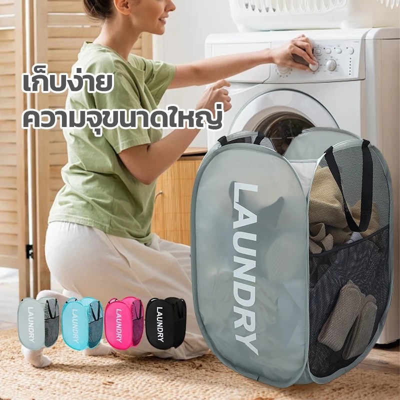 ตะกร้าใส่ผ้าพับได้ ตะกร้าผ้าพับได้ ตะกร้าตาข่ายมัลติฟังก์ชั่น เก็บเสื้อผ้า พับเก็บสะดวก แบบตาข่ายยืดหยุ่นจุของได้เยอะ