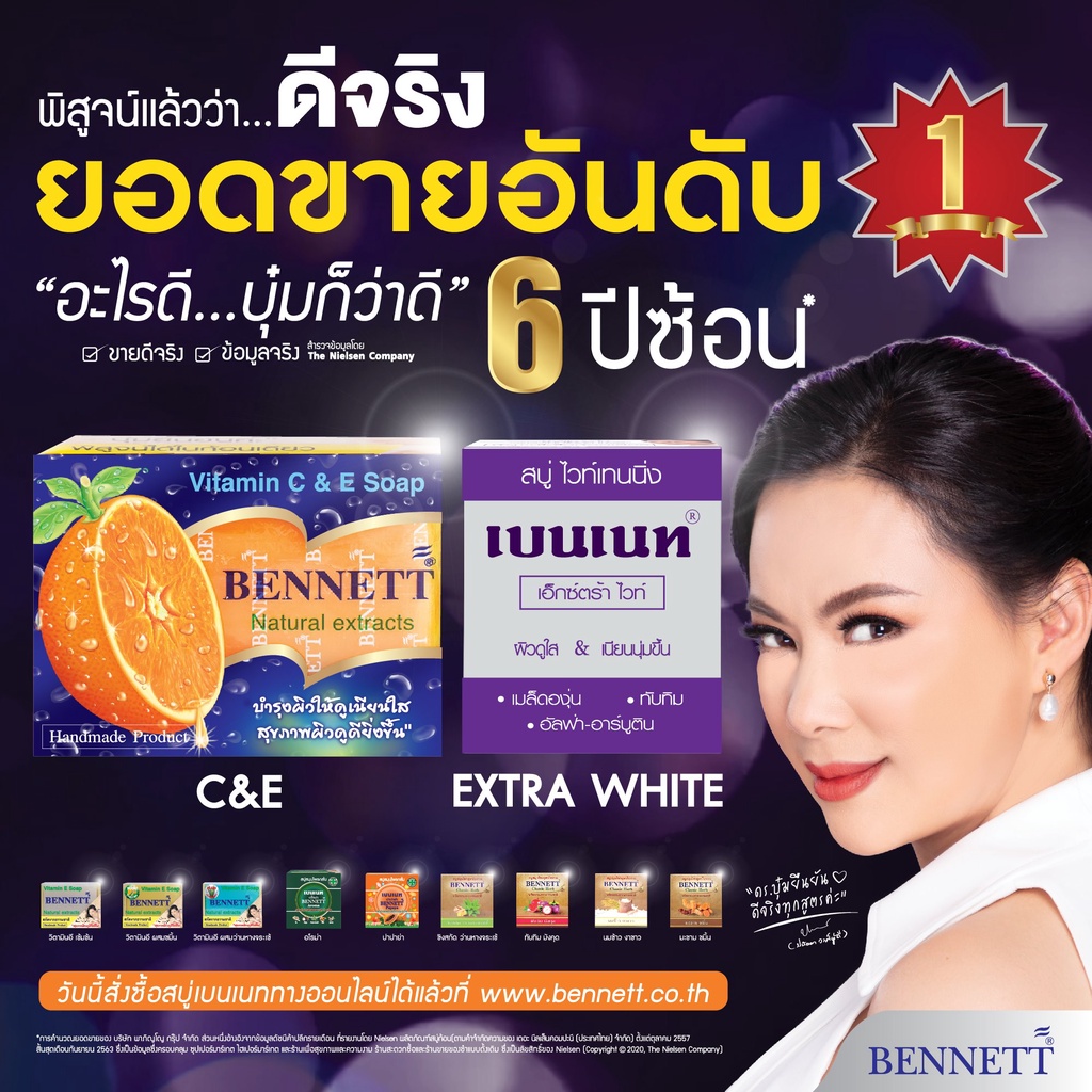 Bennett เบนเนท สบู่ วิตามินซี แอนด์ อี สบู่ล้างหน้า สบู่บุ๋มปนัดดา มีหลายสูตรให้เลือก