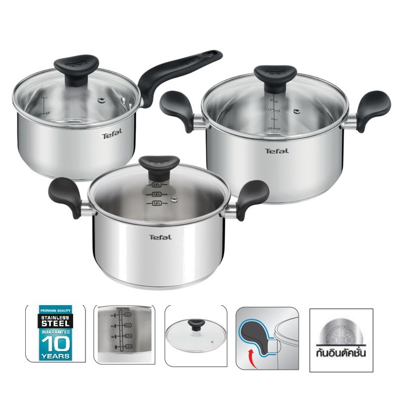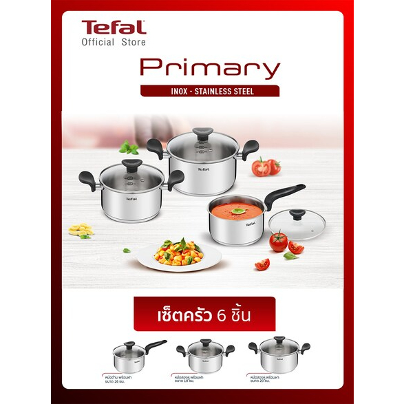 ชุดหม้อสเตนเลส 6 ชิ้น TEFAL PRIMARY รุ่น E308S674 (รับประกันศูนย์ 2 ปี)