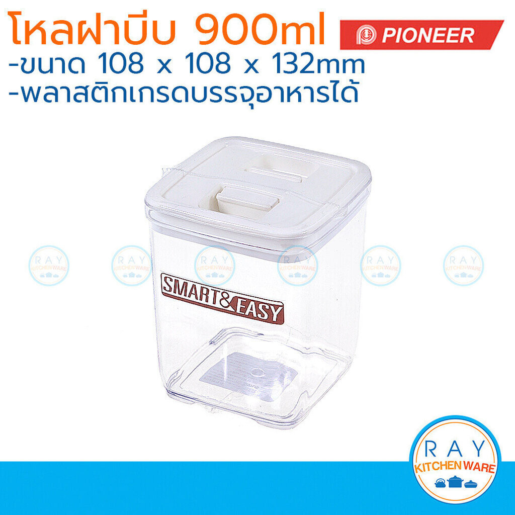 Pioneer โหลเหลี่ยมสุญญากาศ ฝาบีบ 900 มล. PN3297L/5 ไพโอเนีย กระปุกน้ำตาล กระปุกเก็บผงกาแฟ โหลนมผง