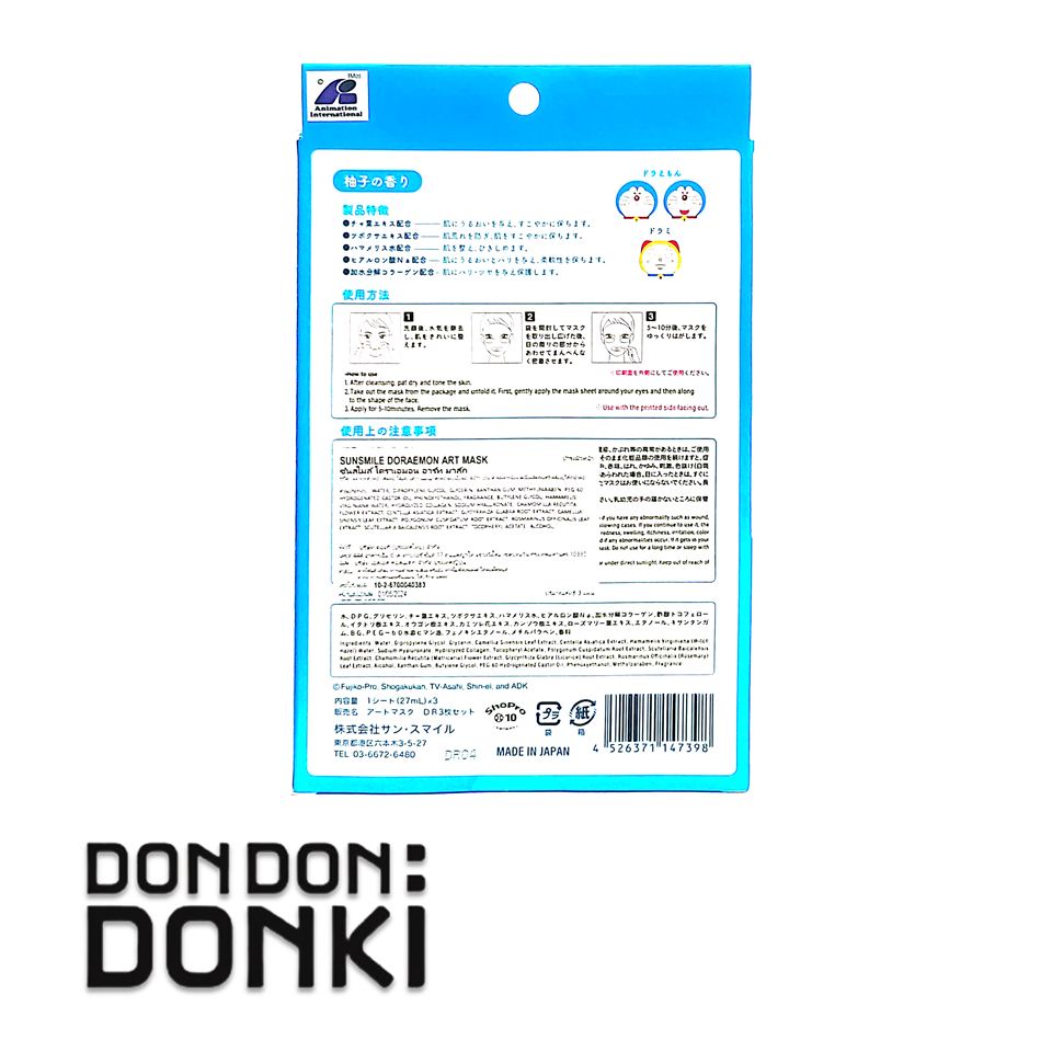 [มาส์กหน้าโดราเอมอน มาส์กหน้าฟินใหม่แบบแมวแมว] Sunsmile Doraemon Art Mask 3ชิ้น3ลาย กลิ่นส้มยุสุ สดชื่น