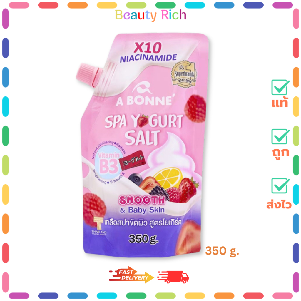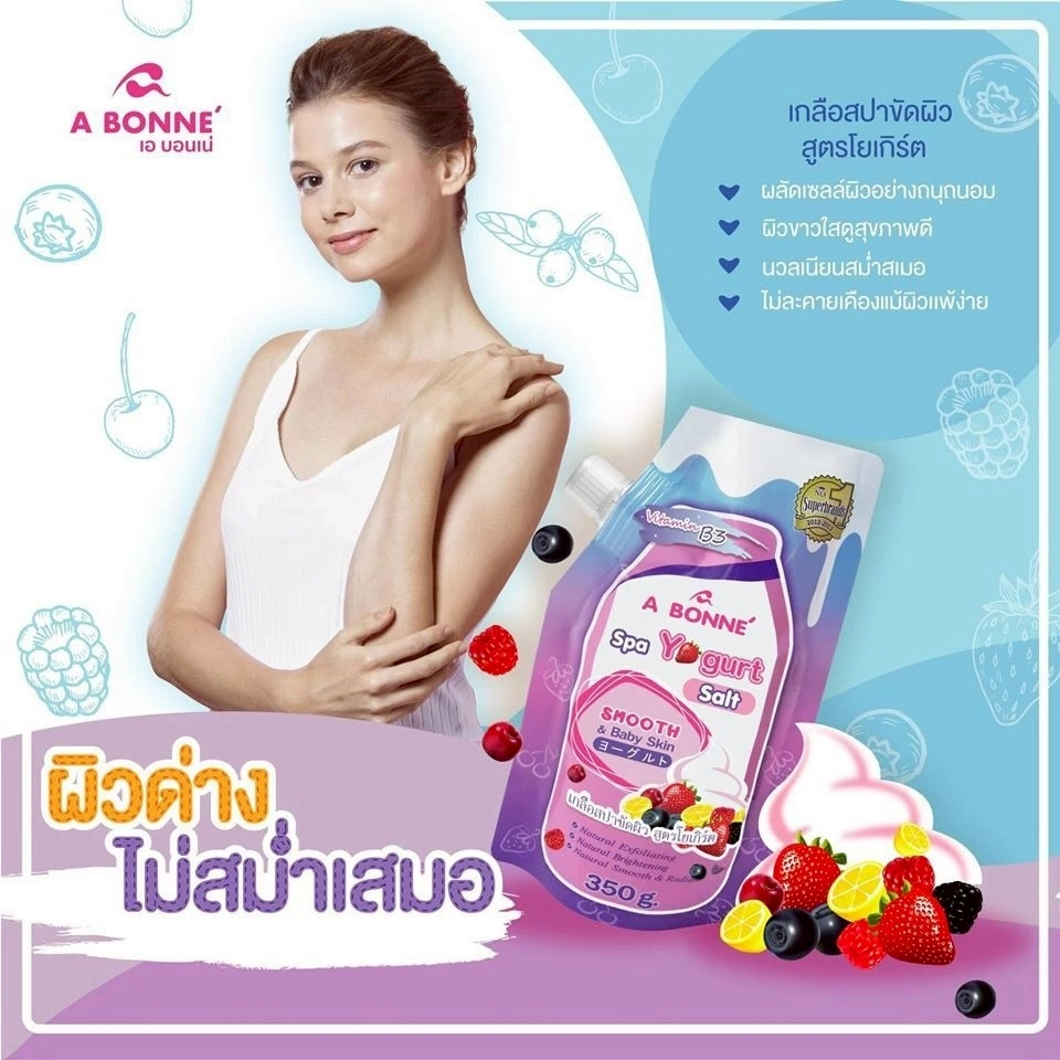 (1 ถุง) A Bonne Spa - เอ บอนเน่ เกลือสปาผิว #สูตรโยเกิร์ต+วิตามินบี 3 (350 g.)