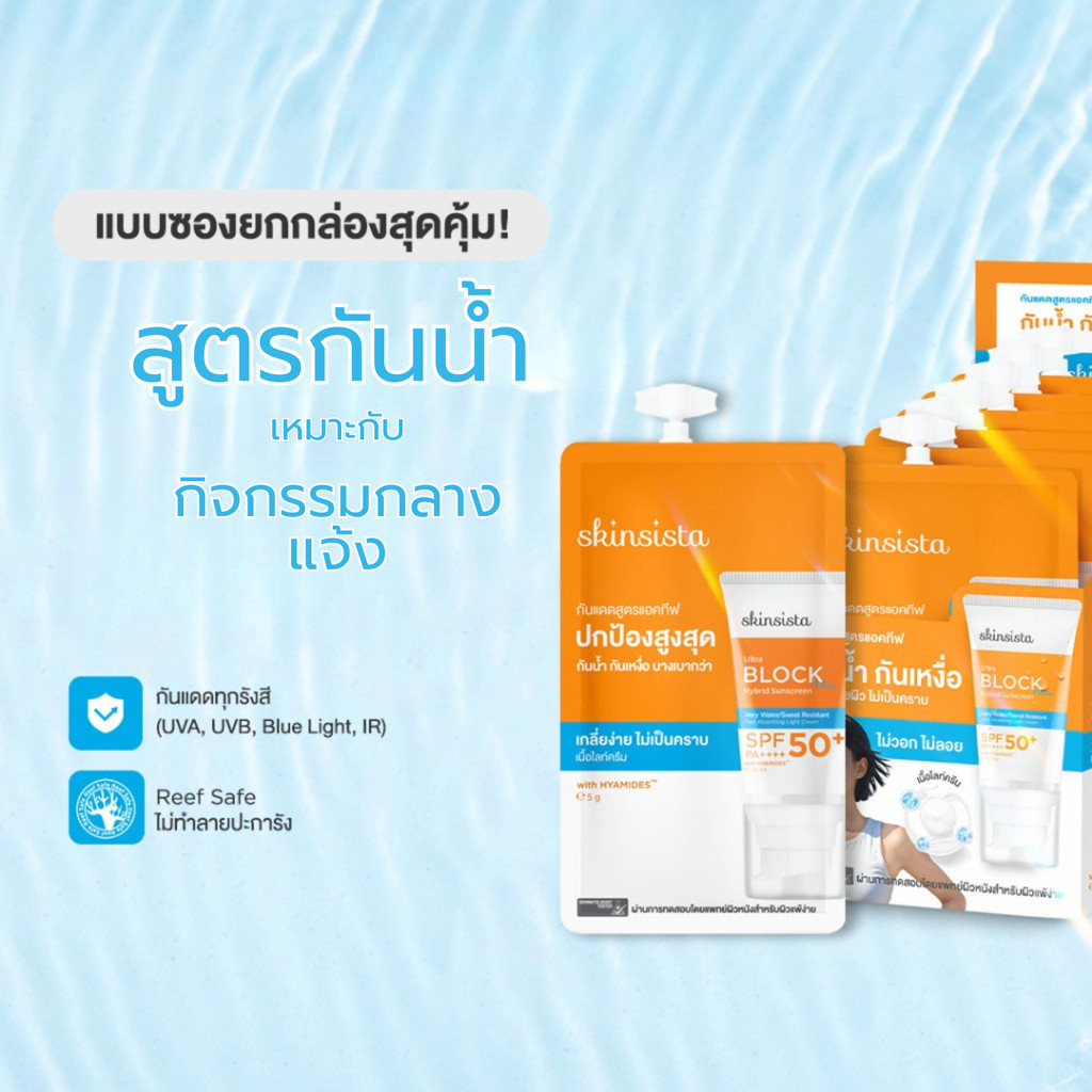 🔥แท้/ดีลสุดคุ้ม/ไลฟ์ทุกวัน🔥(กล่องx6ซอง) Skinsista Ultra Block Active Hybrid Sunscreen SPF50+ PA++++