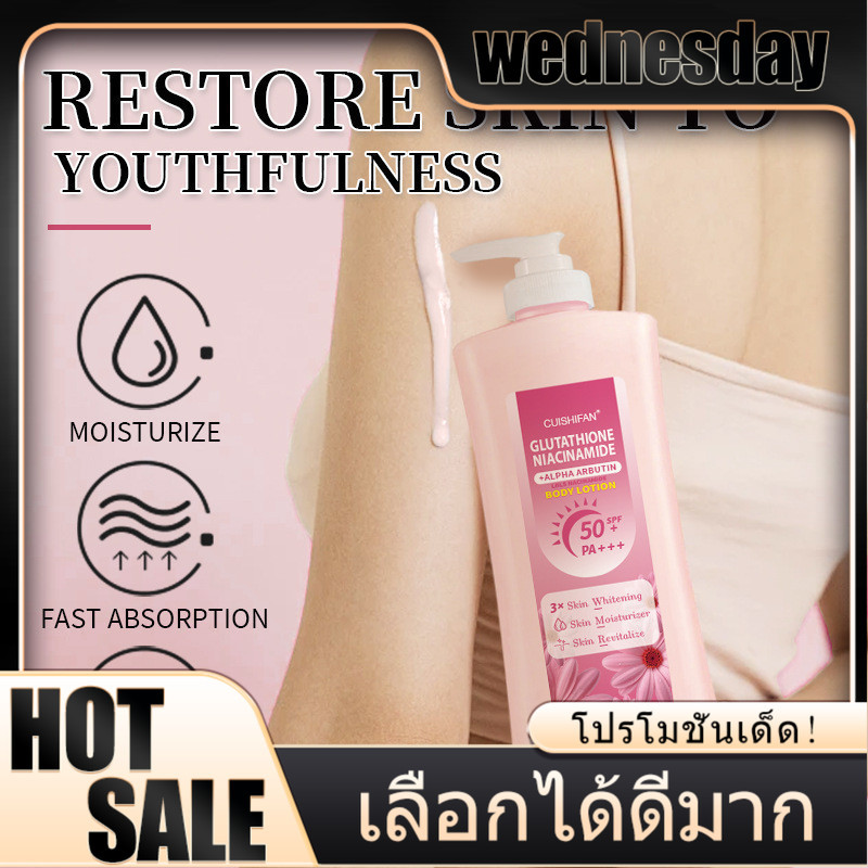 WED 🔥คืนสภาพผิวขาวเนียน!🔥 โลชั่น Glutathione 1000ml 🌟 ผสม Niacinamide ปรับผิวเรียบเนียน ไม่เหนียวเหนอะ ใช้ได้ทั้งตัว