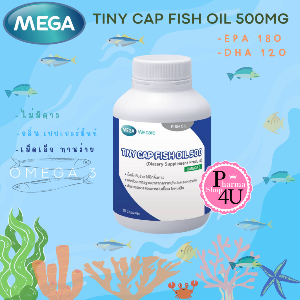 Mega wecare TINY CAP FISH OIL น้ำมันปลา 500MG.ขนาด 30 แคปซูล [เม็ดเล็ก ไม่มีกลิ่นคาว]