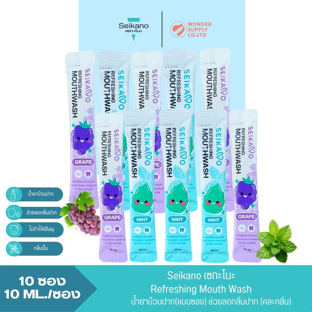 สุดคุ้ม น้ำยาบ้วนปากSeikano แบบซองใช้แล้วทิ้ง 10มล. สุดคุ้ม SEIKANO MOUTH WASH กลิ่นมิ้นต์ และกลิ่นองุ่น พกพาได้ง่าย
