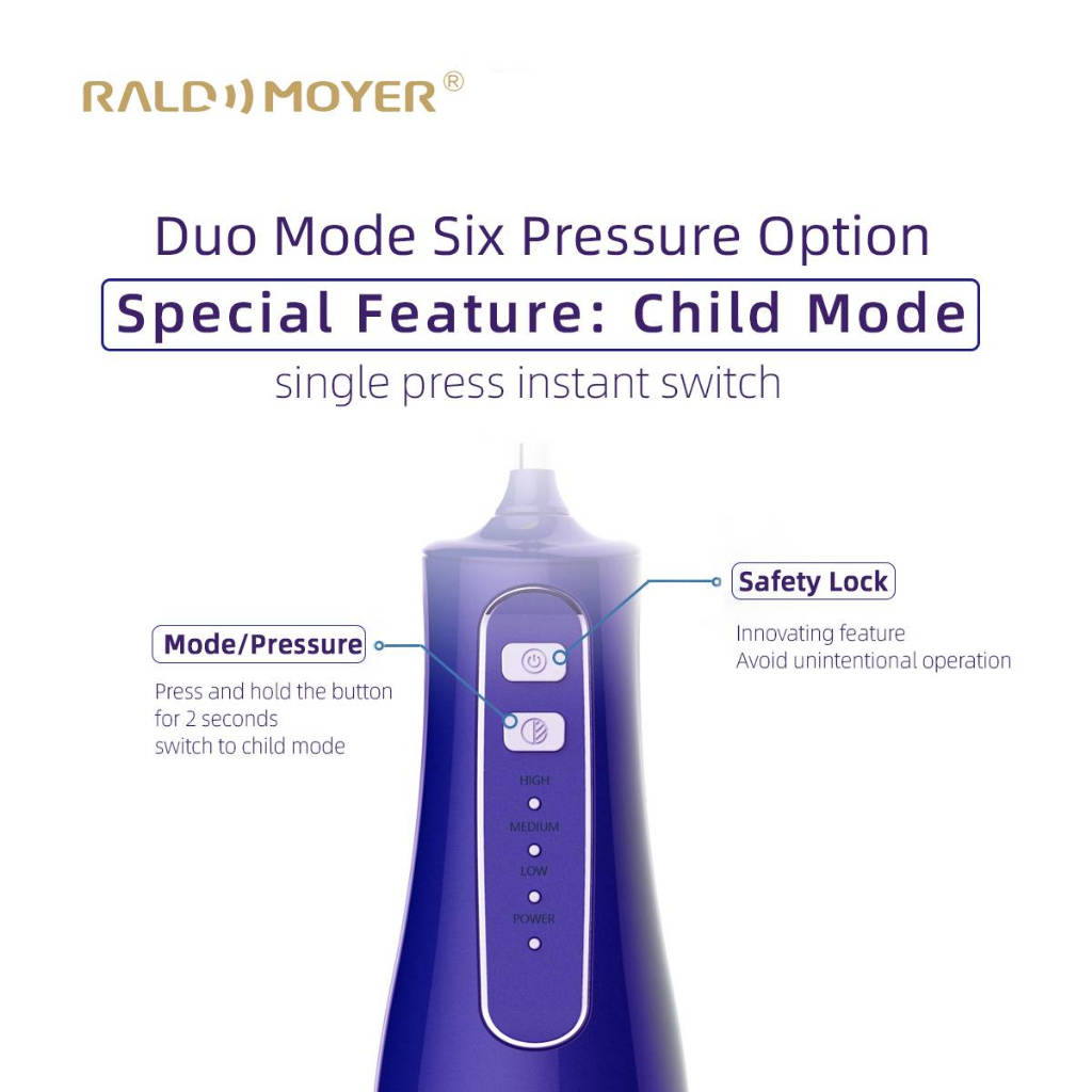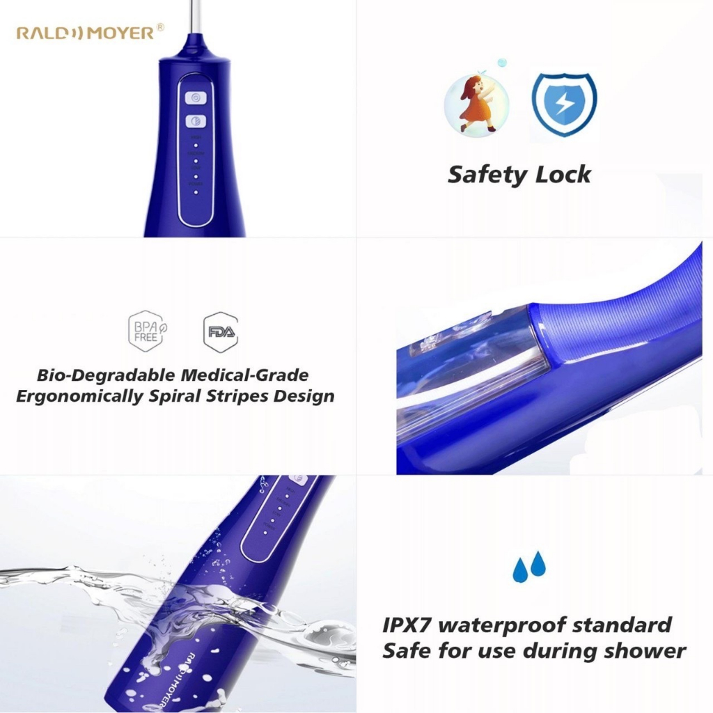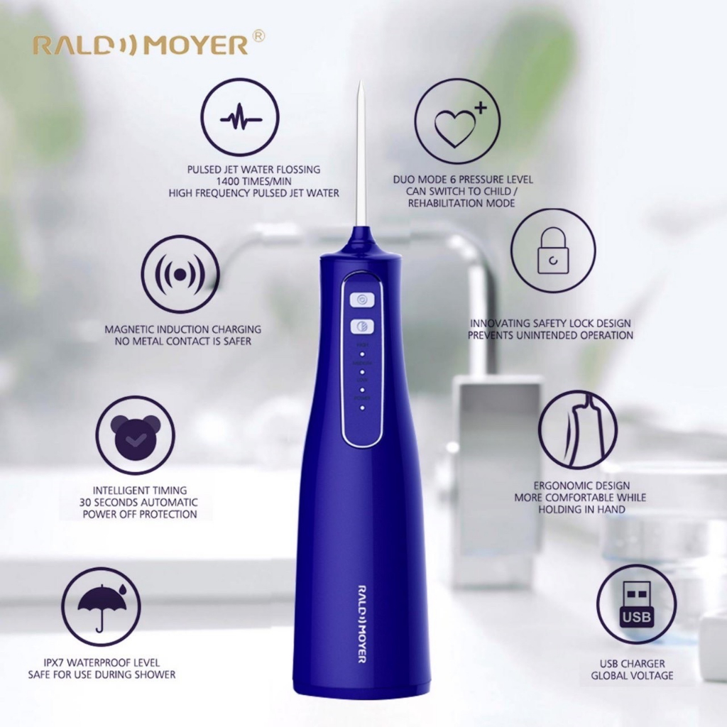 Raldmoyer Dental Water Jet AT120 สีน้ำเงิน เครื่องฉีดน้ำทำความสะอาดฟันแบบพกพา