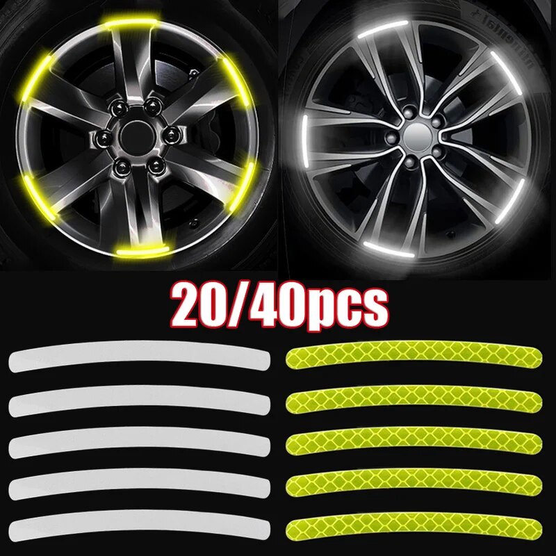 40/20pcs Car Tire Rim Reflective Sticker Night Safety Warning Strip Motorcycle Bike Auto Wheel Hub Reflector Stickers De