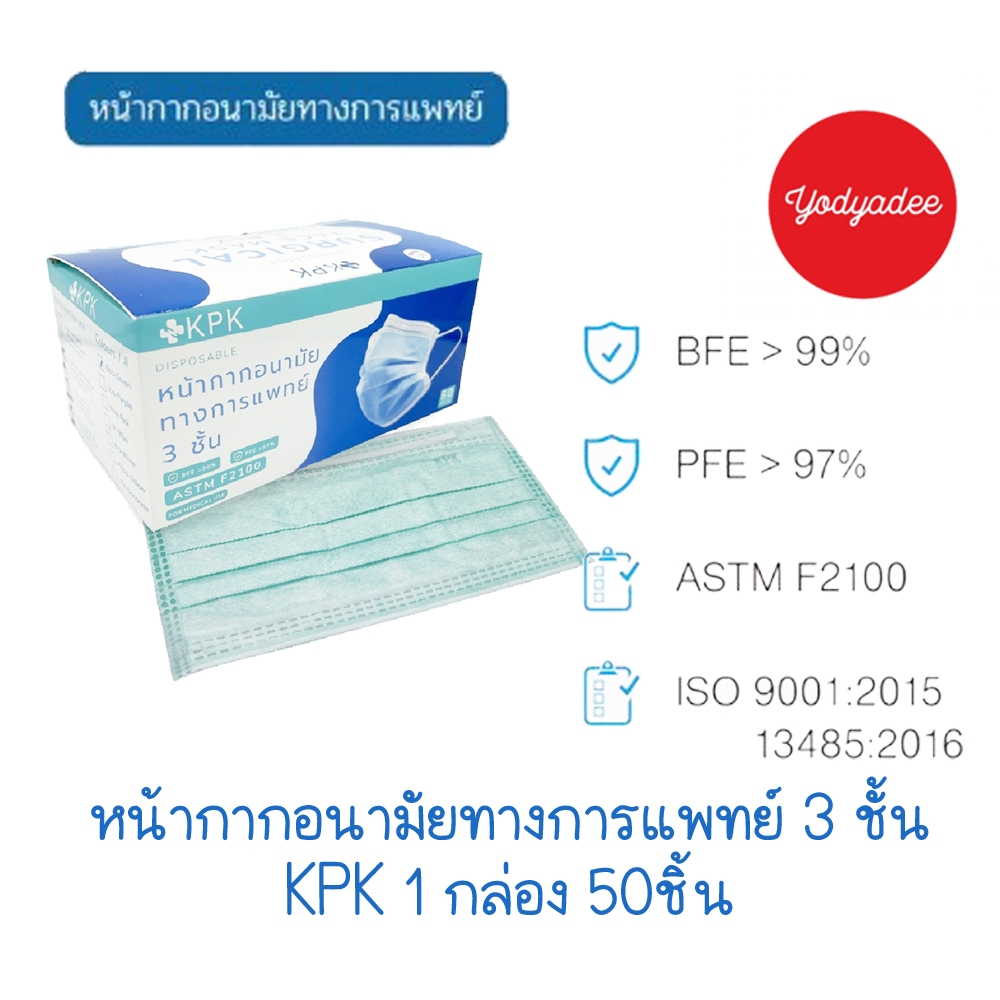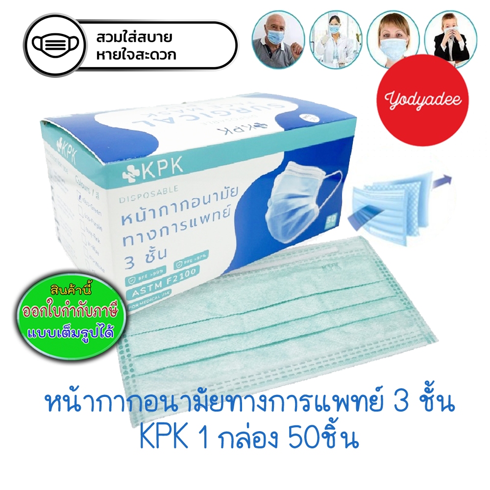 หน้ากากอนามัย Surgical Mask Brand KPK หนา 3 ชั้นสีเขียว 15087